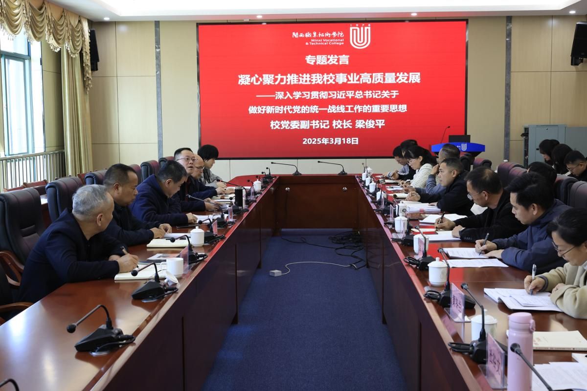 会议要求,新征程上,我们要及时跟进学习习近平总书记关于统战工作的重要讲话和重要指示批示精神,推动统一战线在强国建设、民族复兴伟业中更好发挥凝聚人心、汇聚力量的政治作用;要充分发挥MG冰球民主党派人士和无党派人士的智力优势、组织优势,凝聚广泛共识,汇聚强大合力,奋力创建职业本科。
