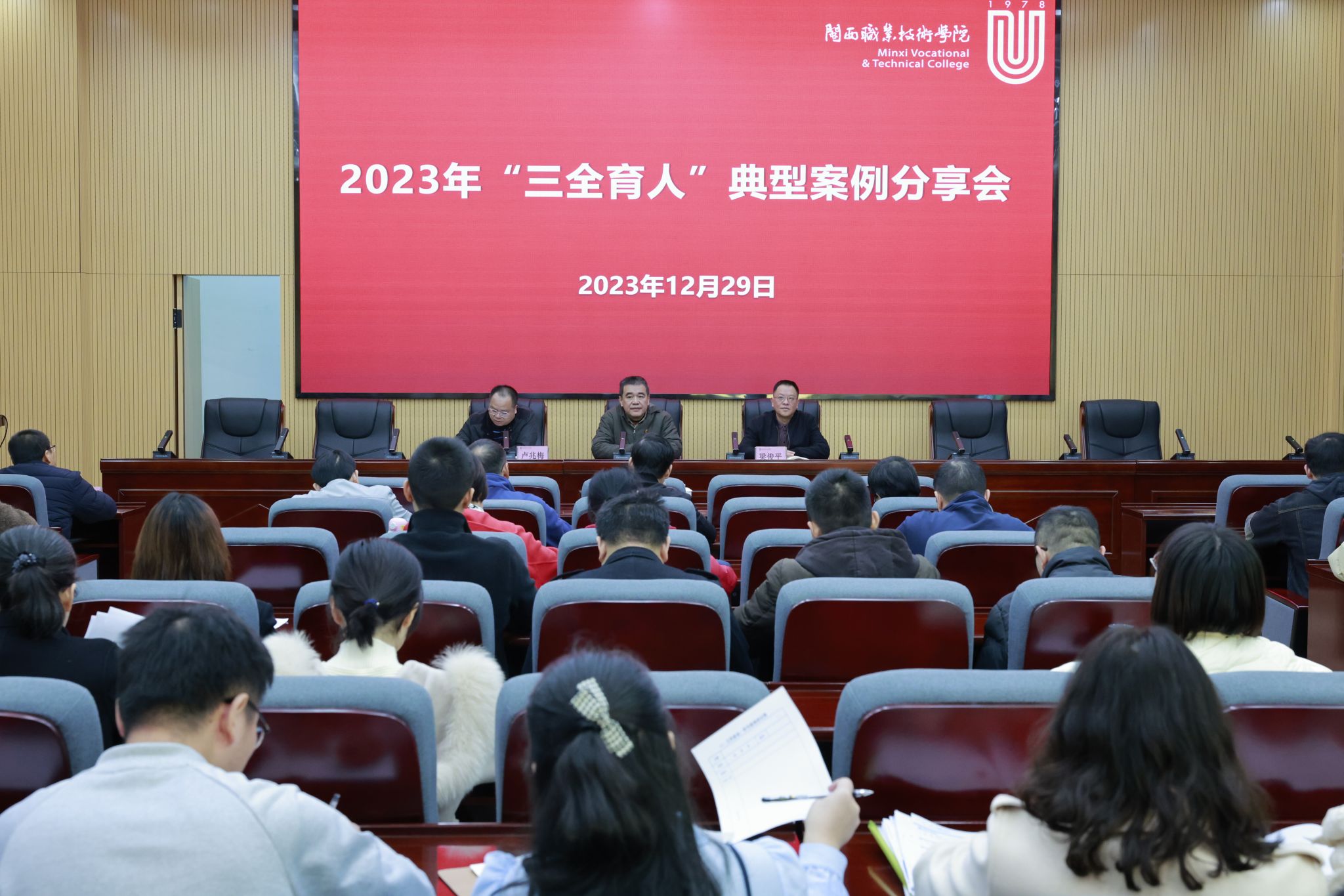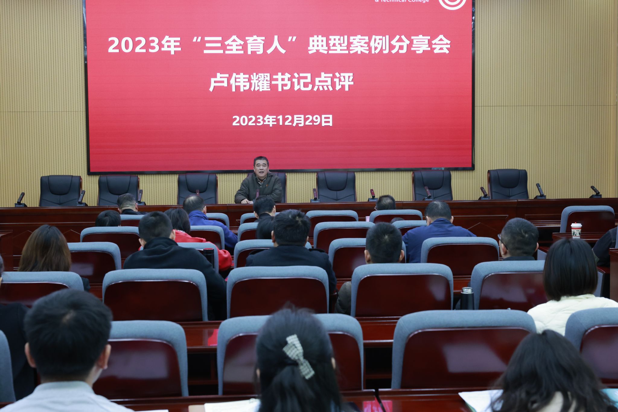 2023年12月29日,MG冰球突破官网举行2023年“三全育人”典型案例分享会,卢伟耀书记、梁俊平校长、卢兆梅副校长,各二级学院书记、副书记,十大育人相关责任部门负责人,全体辅导员参加分享会。分享会由卢兆梅副校长主持。