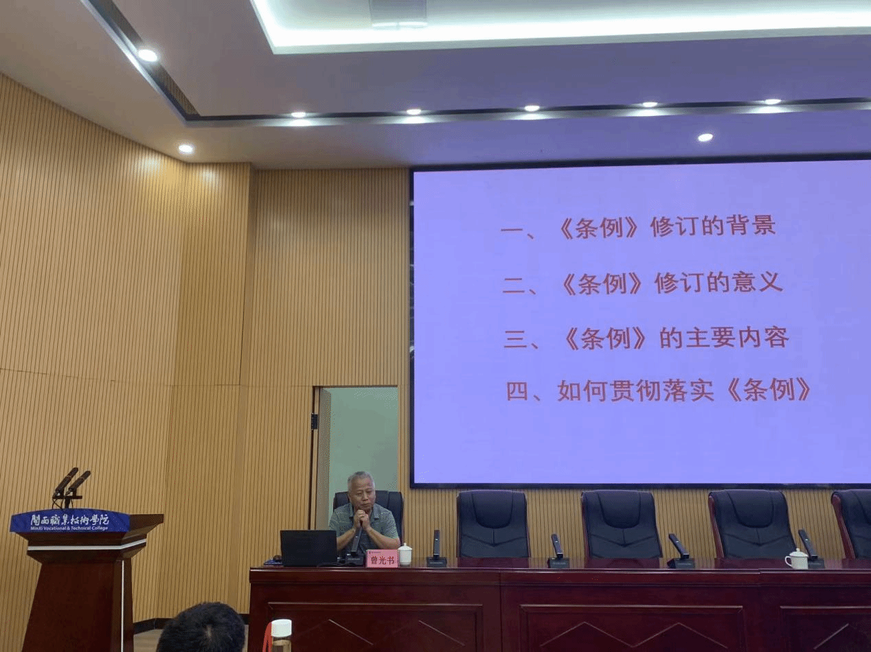 曾光书同志从《中国共产党统一战线工作条例》修订的背景、意义、内容,以及如何贯彻《条例》四方面展开,详细解析了《条例》,以及如何根据《条例》做好新时代统战工作,内容深入浅出,对进一步做好高校统战工作具有指导性意义。