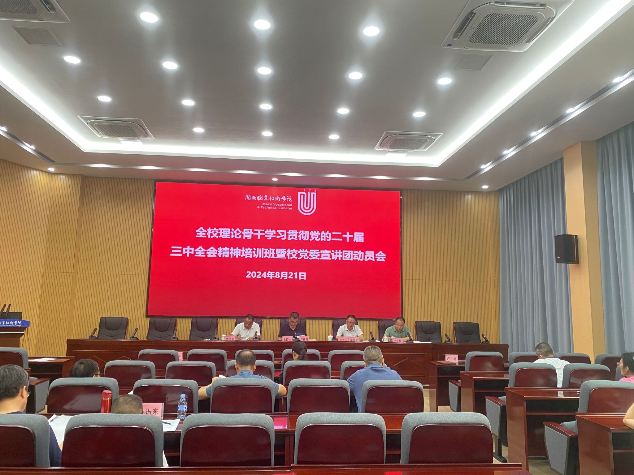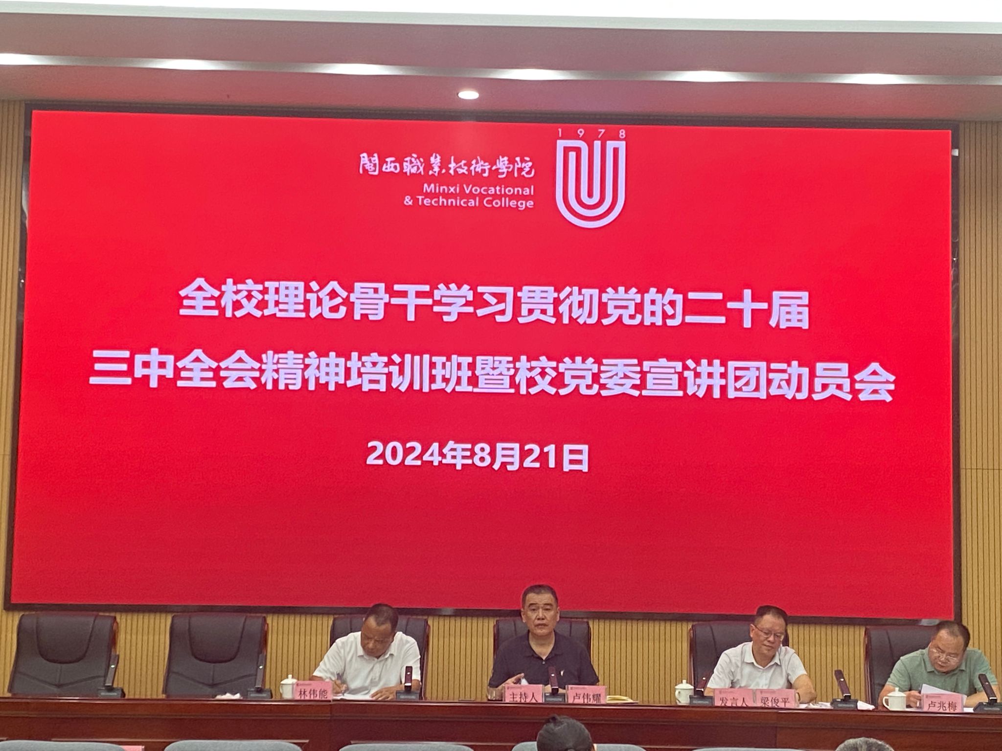 8月21日,MG冰球召开理论骨干学习贯彻党的二十届三中全会精神培训班暨校党委宣讲团动员会。会议由校党委委员、副校长卢兆梅主持,校党委书记卢伟耀出席会议并讲话。