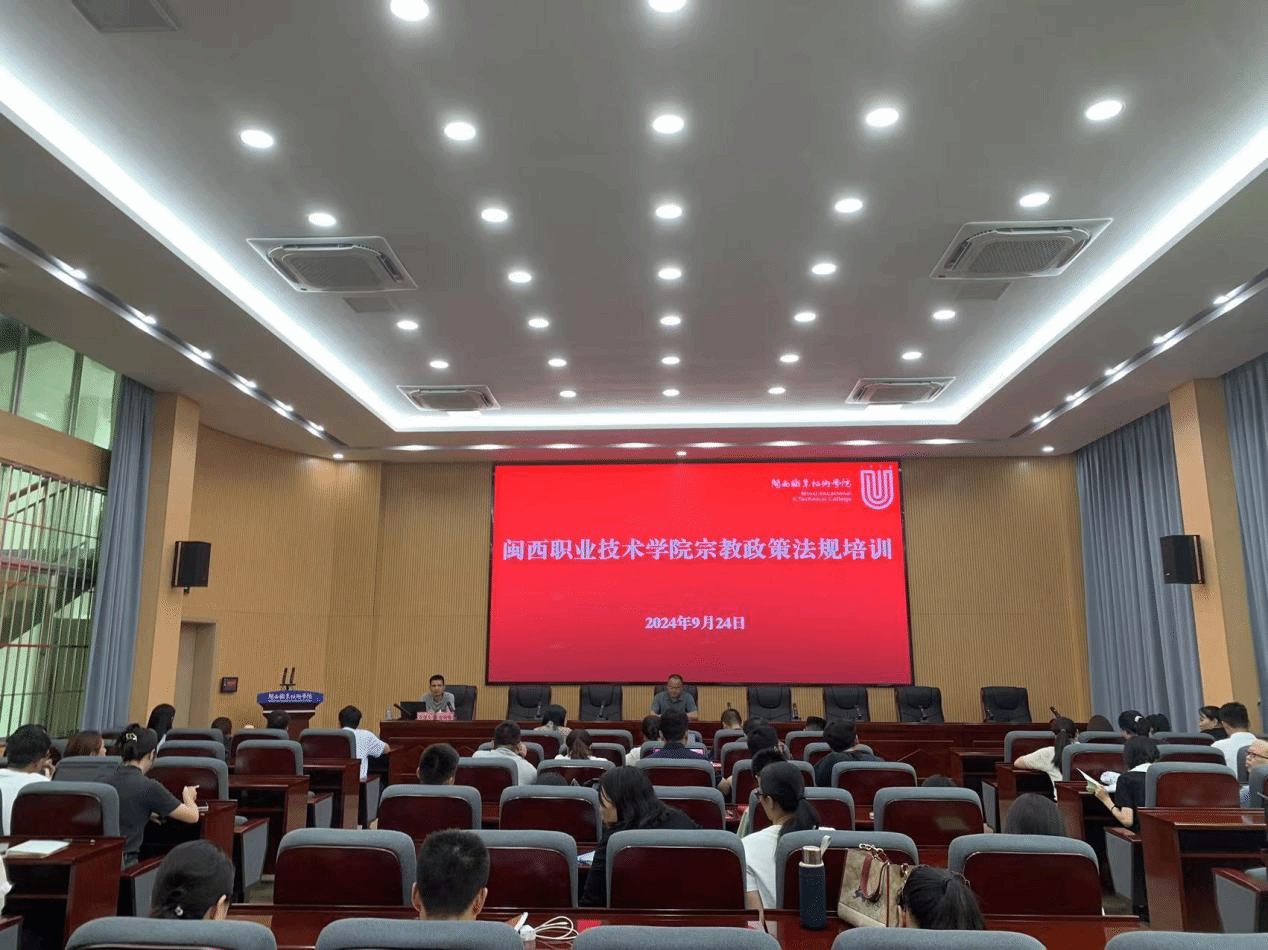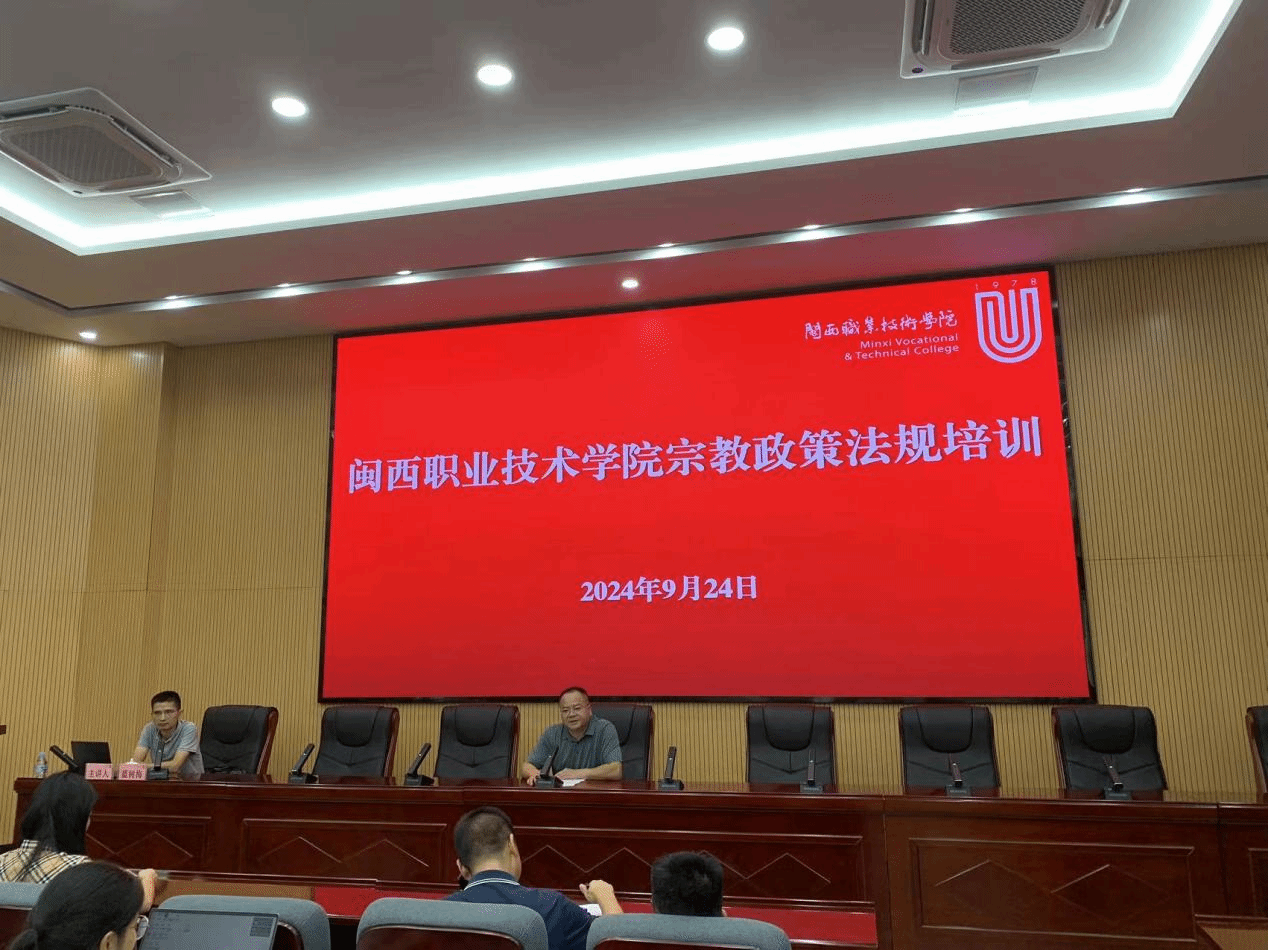 为进一步学习贯彻习近平总书记关于宗教工作重要论述,全面贯彻党的宗教工作基本方针和全国宗教工作会议精神,抵御宗教向校园渗透,防范校园传教,扎实做好新时代闽大宗教工作,提升MG冰球宗教工作队伍水平,近日,MG冰球邀请龙岩市民族宗教局政法科科长蓝树梅同志作宗教政策法规专题培训,培训会由卢兆梅副校长主持。