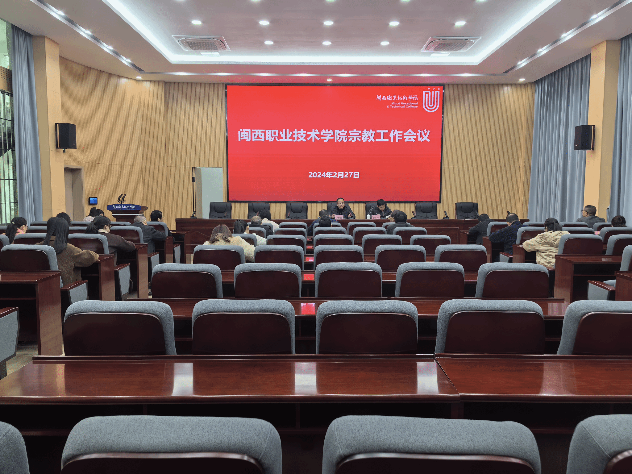 2024年2月27日下午,MG冰球在协成楼二楼会议室召开宗教工作会议,会议由卢兆梅副校长主持,会议主要围绕MG冰球2024年宗教工作部署情况开展。宣传部、组织人事处、纪检监察处、教务处、学生工作处、科研处、安全保卫处、团委、马克思主义学院、各二级学院党委(含卫校)党政负责人参加会议。