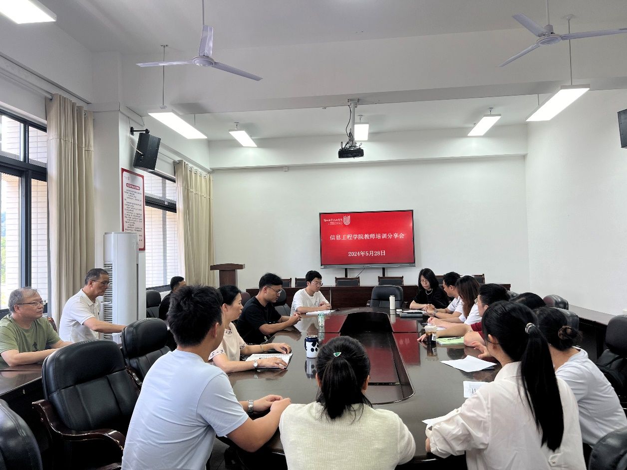 为进一步发挥外出学习教师的引领作用,充分展示教师外出学习成果,促进教师共同成长,2024年5月28日,信息工程学院在辛耕楼306会议室召开教师外出培训分享交流会,此次会议由滕碧红副院长主持,学院全体专任教师参会。