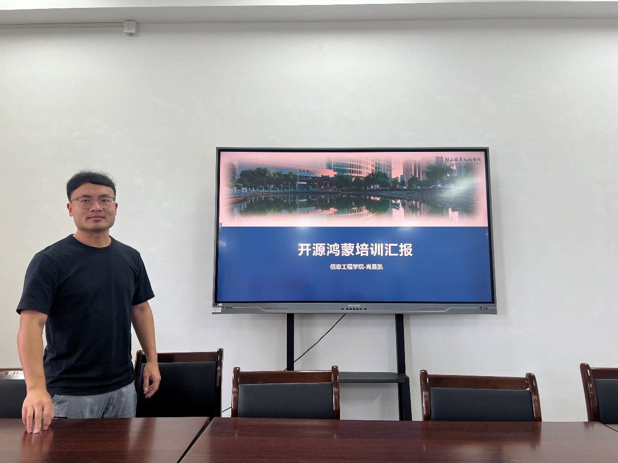 会上分别由肖晨凯、周卉芬等两位教师代表对培训成果进行汇报。肖老师围绕鸿蒙生态、鸿蒙前景、南向编程、北向编程等四个方面作了开源鸿蒙培训汇报。周老师围绕电子装联相关知识、基板检修-PCBA焊点检查、基板检修-BGA返修、基板焊接-焊接机器人等四个方面作了培训分享汇报。