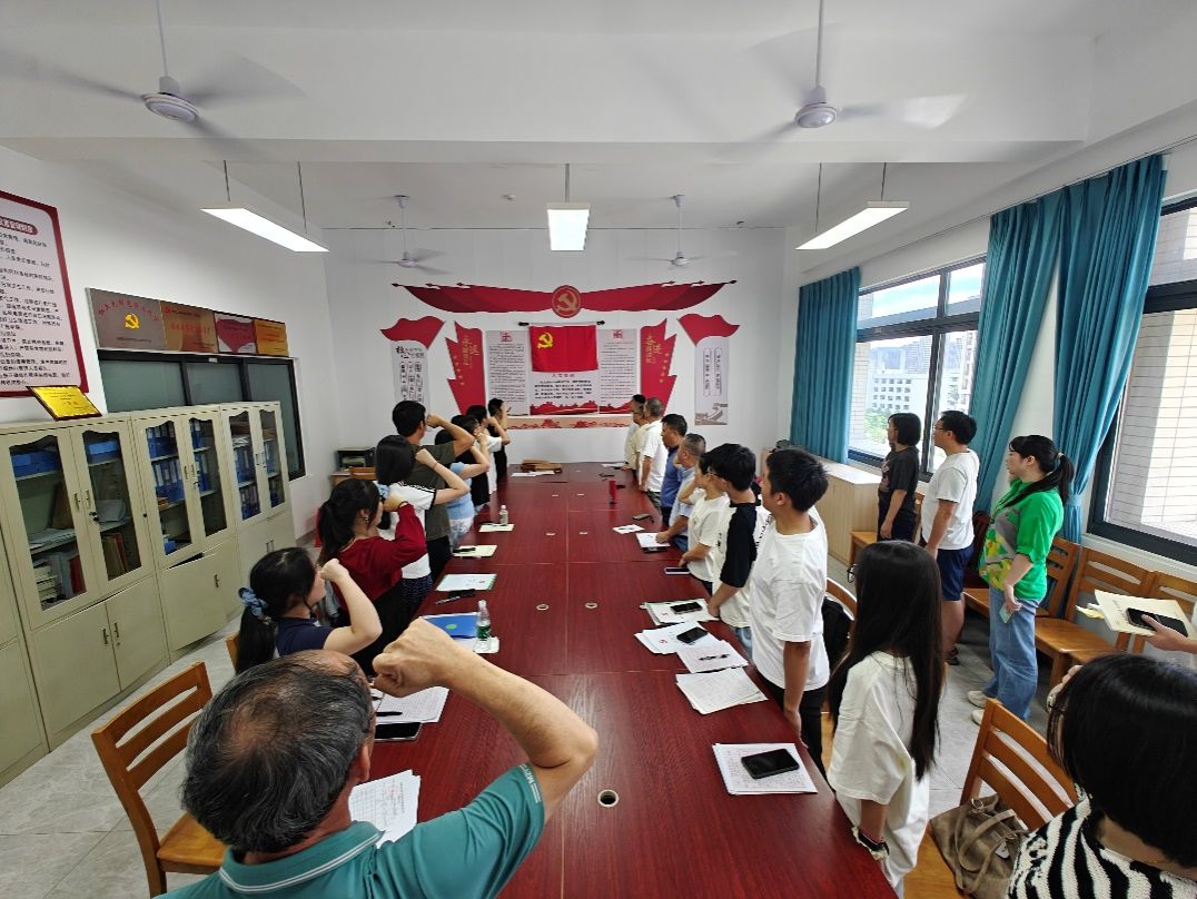 随后,全体党员重温入党誓词。支部组织委员领誓,全体党员一同举起右拳,面向鲜红的党旗,集体庄严宣誓。通过这样的庄严仪式,引导毕业生党员不忘入党初心、坚定理想信仰、清正廉洁。