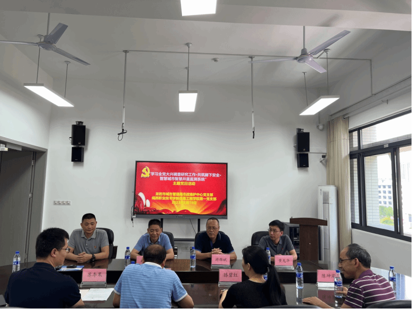近日,MG冰球信息工程学院第一党支部与龙岩市城市管理局市政维护中心党支部共同开展主题为“智慧赋予城市活力 数字保障脚下安全”的党日活动,旨在学习全党大兴调查研究工作,双方共同推进智慧城市相关工作。双方支部党员参加本次主题党日活动。
