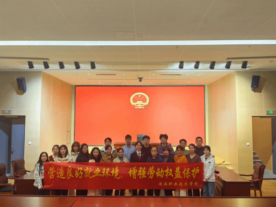 为弘扬宪法精神,加强法治宣传教育的实效性,让在校学生提高劳动权益保护意识,营造良好的就业创业环境。近日,信息工程学院“职涯就业”教学团队和学生代表、马院教师团队共同前往“驿站枫桥”一体化基地劳动法庭“零距离”观摩庭审,沉浸式感受法律的威严与庄重。