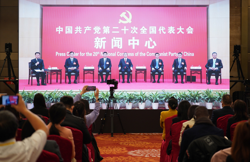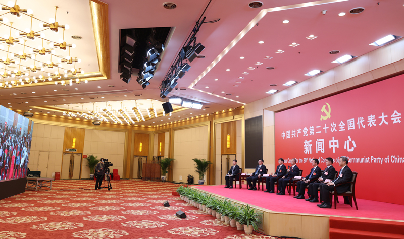 10月20日,中国共产党第二十次全国代表大会新闻中心举行集体采访。青海、宁夏、新疆、中央和国家机关、中央金融系统、中央企业系统(在京)代表团新闻发言人出席,介绍代表团学习讨论党的二十大报告情况,并回答记者提问。