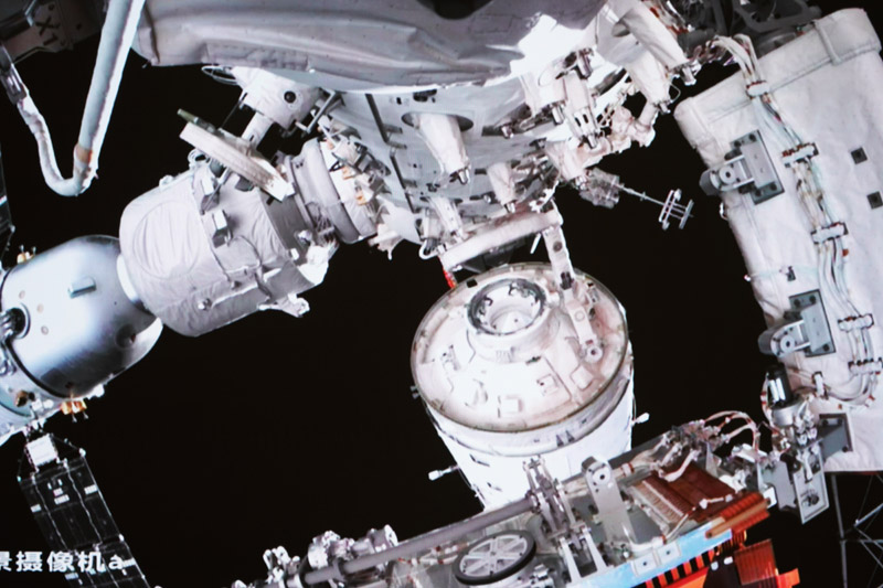2022年9月30日在北京航天飞行控制中心拍摄的问天实验舱转位画面。这是问天实验舱与天和核心舱分离,采用平面转位方式进行转位。新华社记者 郭中正 摄