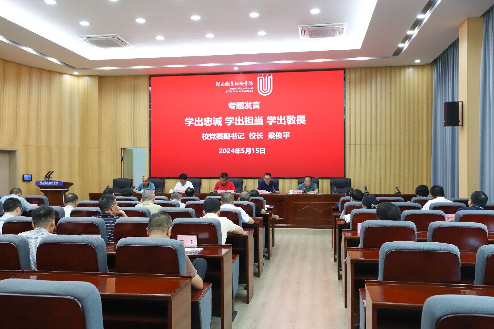 5月15日下午,MG冰球党员领导干部党纪学习教育读书班交流研讨会举行,围绕学习领会习近平总书记关于党纪学习教育的重要讲话重要指示精神,学习《中国共产党纪律处分条例》,进行深入交流研讨。校党委书记卢伟耀主持并讲话。梁俊平、李贞鑫、卢兆梅、温献荣、张源峰等5位校党委委员作重点交流发言,各所属党委书记作书面发言。全校副处级及以上领导干部参加。