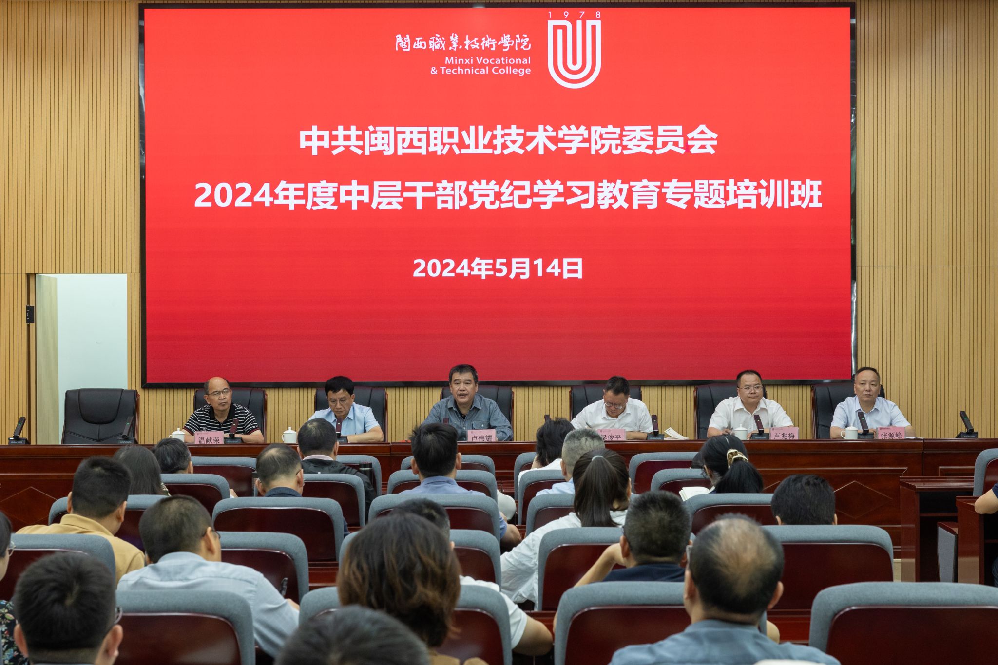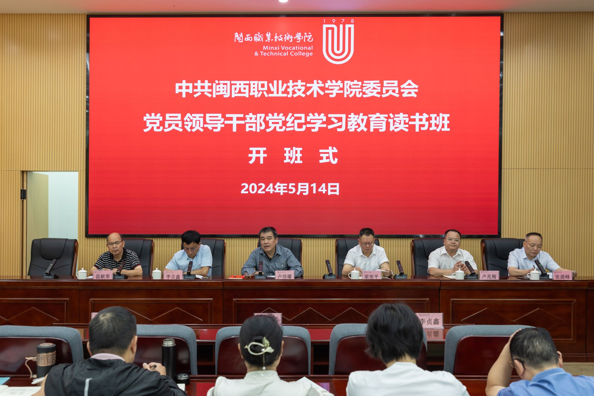 5月14日上午,MG冰球党员领导干部党纪学习教育读书班在协成楼二楼第一会议室开班。校党委书记卢伟耀在开班式上作动员讲话,校领导出席开班式。
