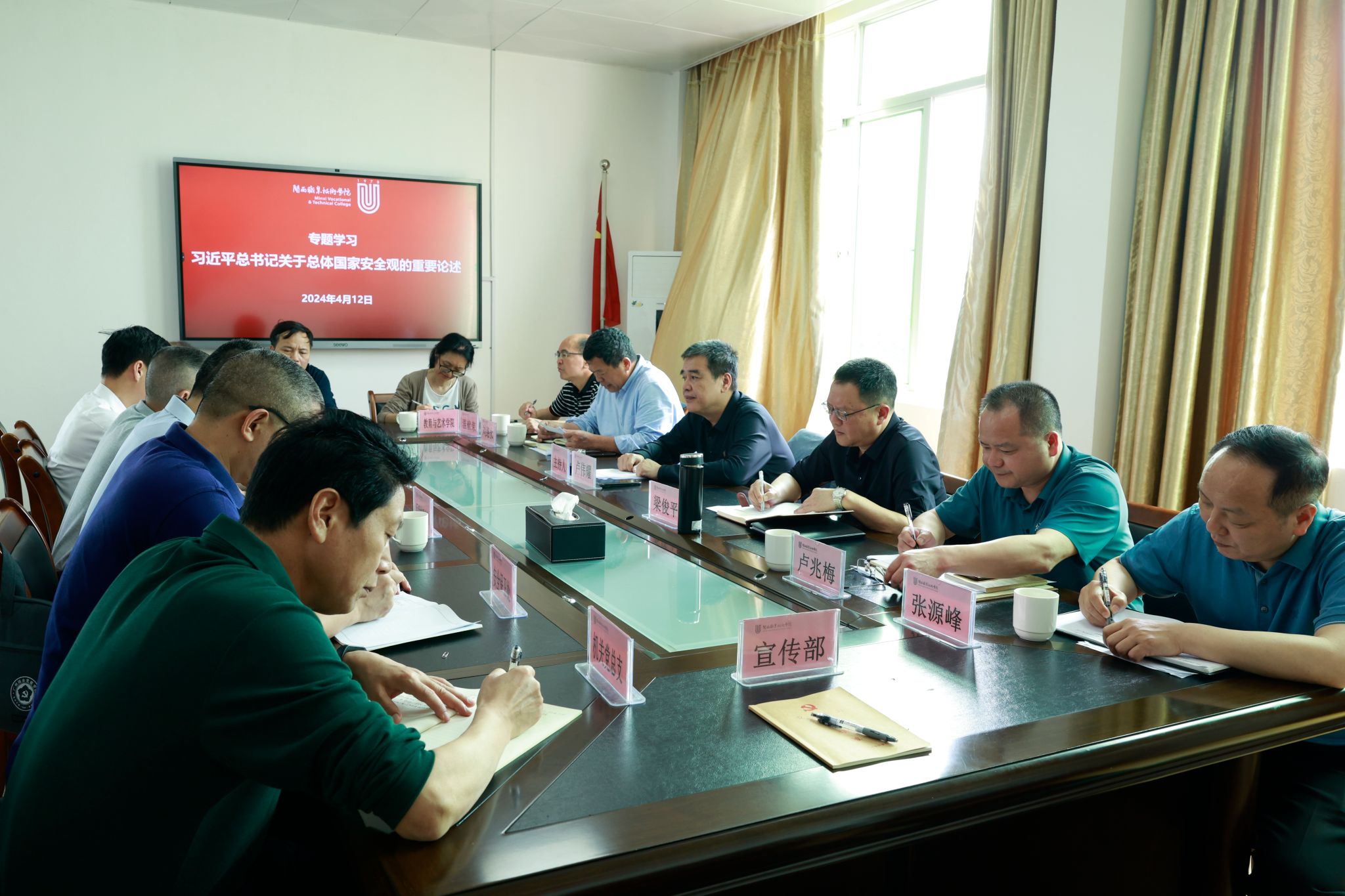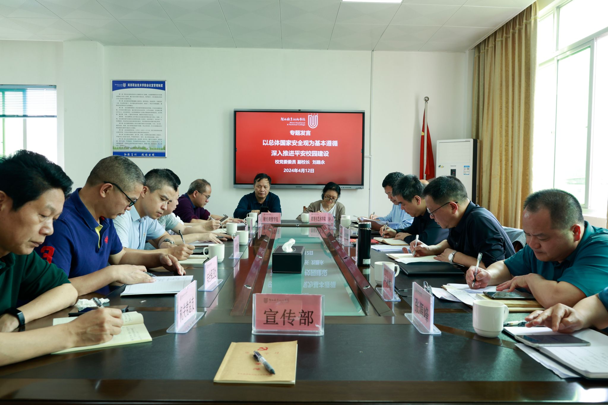 会议指出, 2024年是习近平总书记提出总体国家安全观10周年,今年4月15日将迎来第九个全民国家安全教育日,我们要深入贯彻落实习近平总书记关于加强国家安全教育的重要指示批示精神,围绕“总体国家安全观·创新引领10周年”活动主题深入开展学校国家安全宣传教育活动。