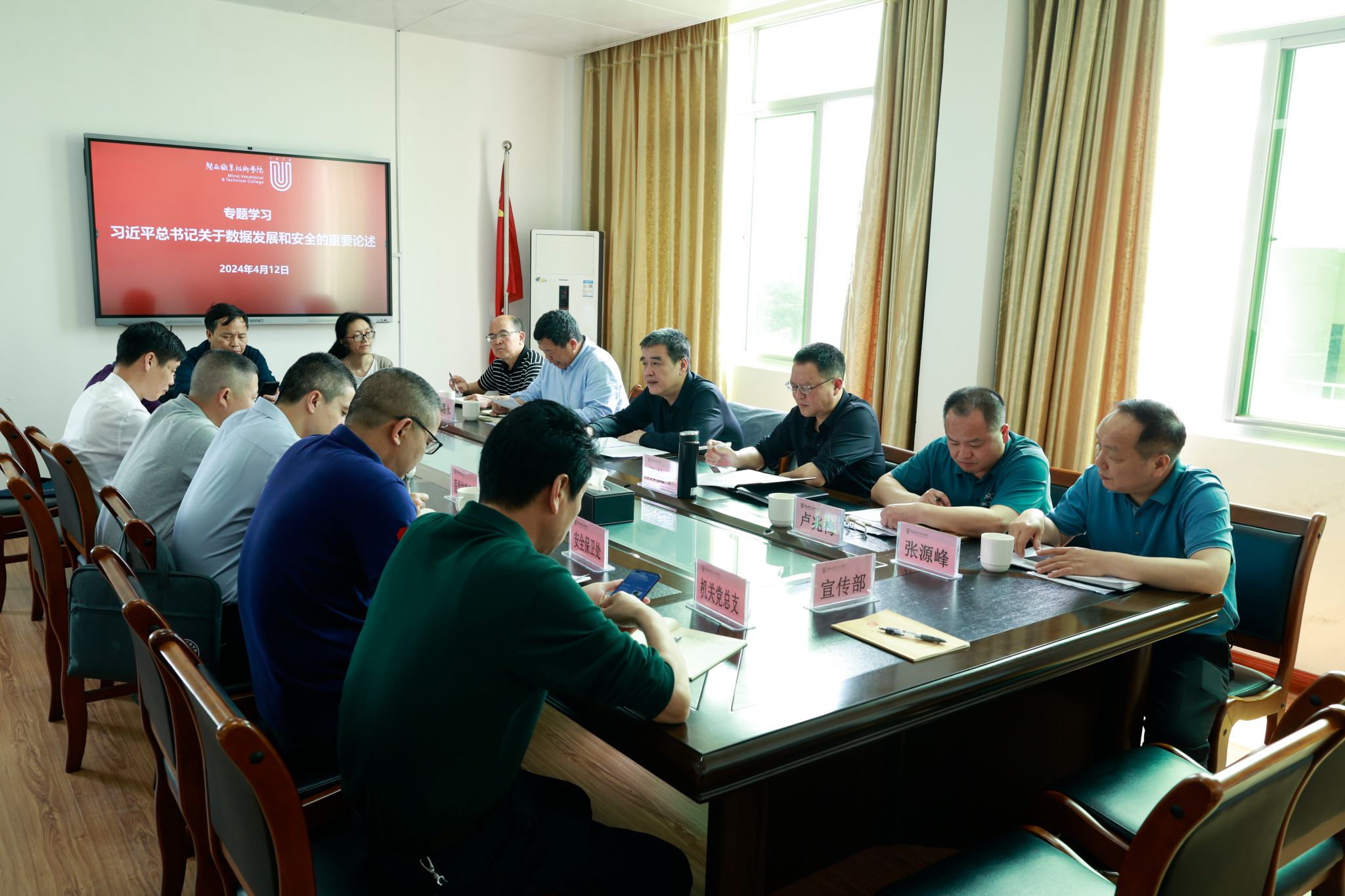 4月12日上午,校党委理论学习中心组2024年第五次学习(扩大)会在六楼会议室召开,学习会围绕认真学习贯彻习近平总书记关于总体国家安全观的重要论述、认真学习贯彻习近平总书记关于数据发展和安全的重要论述、认真学习贯彻习近平总书记关于网络强国的重要思想,专题学习教育时评:坚定走好教育数字化的中国道路。校党委书记卢伟耀主持学习会,校党委委员、副校长刘路永作专题发言,中心组成员围绕学习内容进行讨论交流。