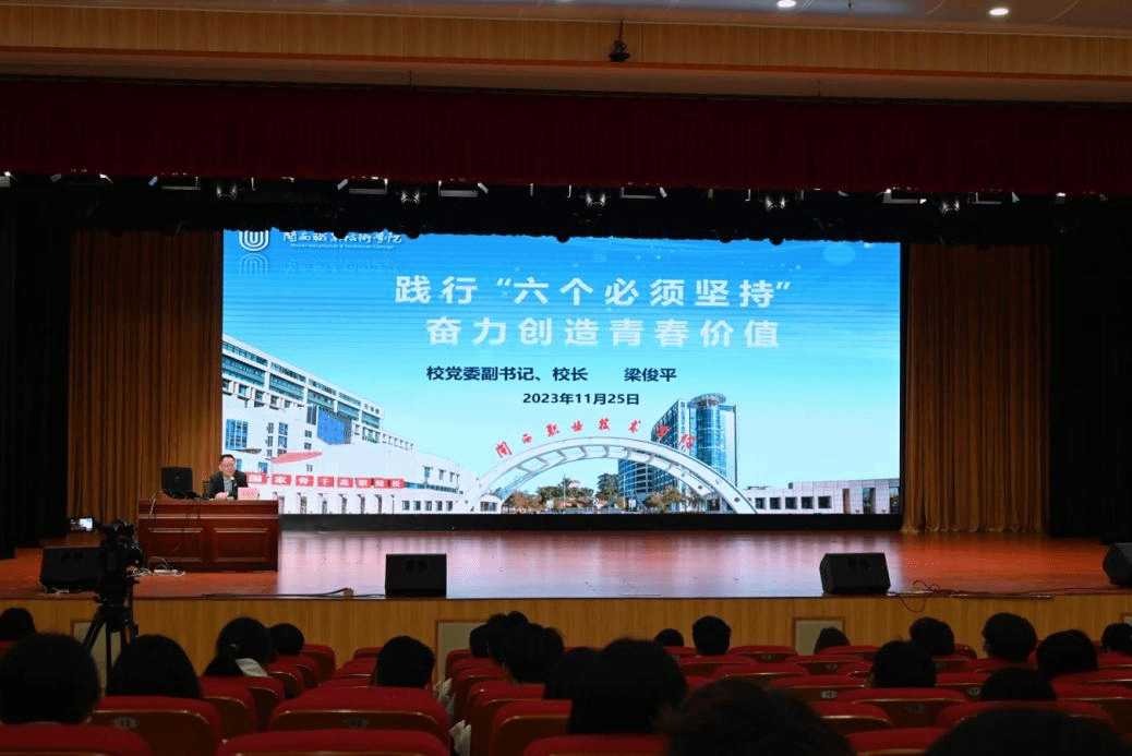 梁俊平校长以《践行“六个必须坚持” 奋力创造青春价值》为题,激励参训学员时刻保持奋进之心,坚守执着,在执着中成就非凡。
