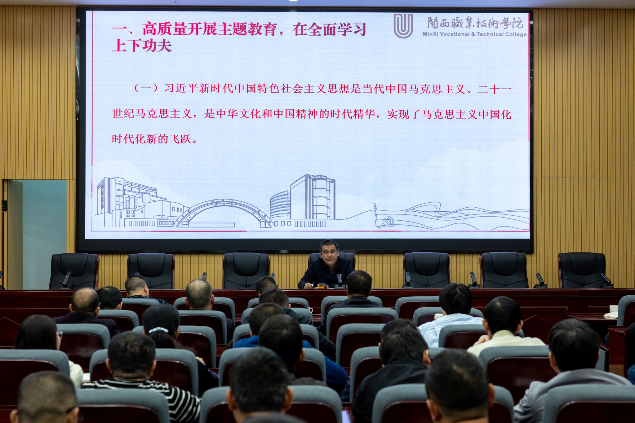 11月21日下午,MG冰球突破官网召开主题教育专题党课学习会,学习会由校党委书记卢伟耀主讲,机关党总支全体党员参加。