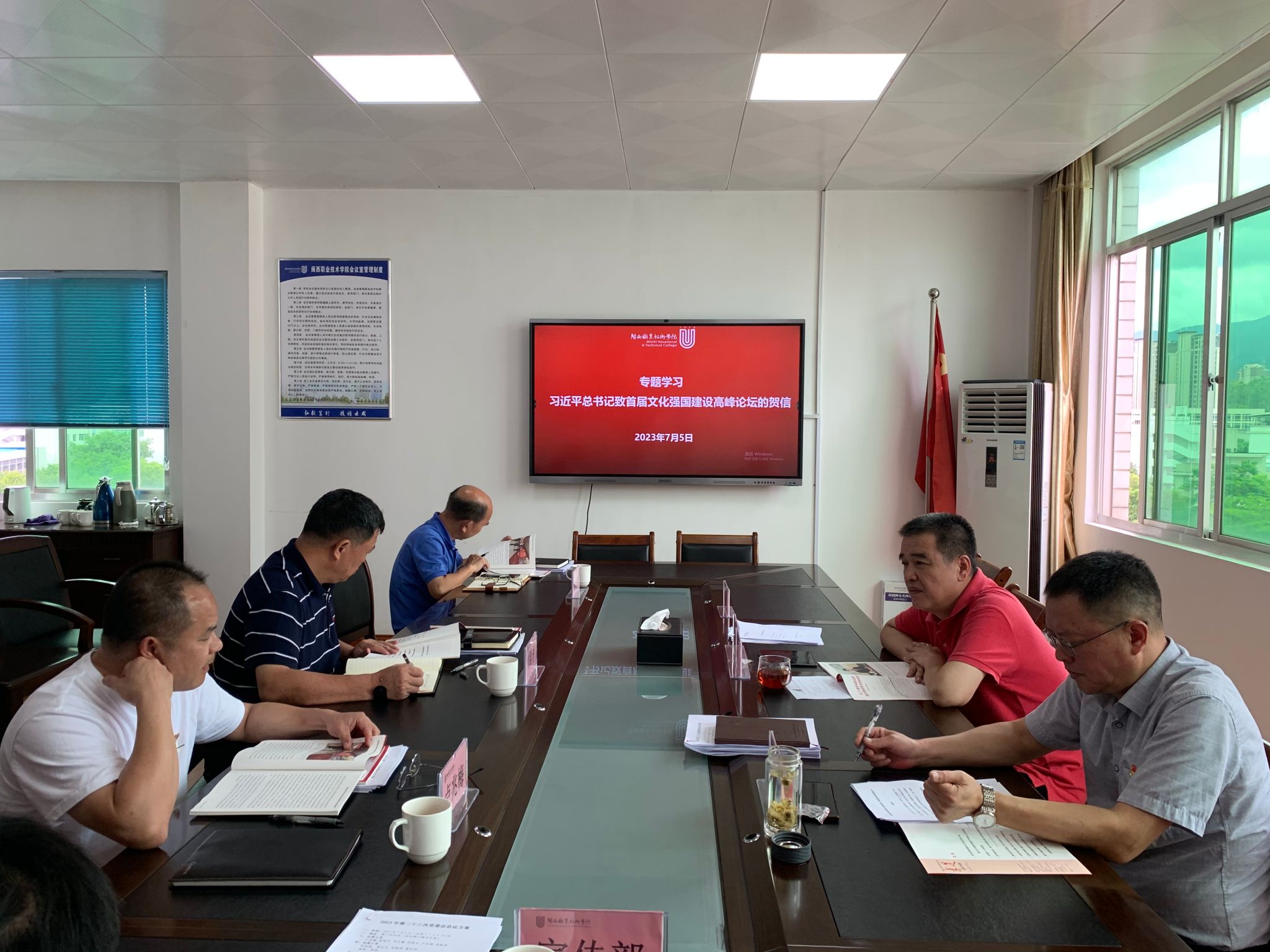 7月5日上午,校党委理论学习中心组2023年第九次学习会在六楼会议室召开,学习会围绕认真学习贯彻习近平总书记重要文章:健全全面从严治党体系 推动新时代党的建设新的伟大工程向纵深发展 ,努力成长为对党和人民忠诚可靠、堪当时代重任的栋梁之才;习近平总书记在中央党校建校90周年庆祝大会暨2023年春季学期开学典礼上的重要讲话,习近平总书记在中共中央政治局第六次集体学习时发表的重要讲话精神,进行集中学习;学习会以习近平总书记同团中央新一届领导班子成员集体谈话并发表的重要讲话,习近平总书记致首届文化强国建设高峰论坛的贺信,习近平总书记致第十五届海峡论坛的贺信专题,开展学习研讨;专题学习2023年福建省对台工作会议主要精神。校党委书记卢伟耀主持学习会,校党委副书记李贞鑫作“坚定不移推进落实全面从严治党,为打造予生最好学校营造良好政治生态”专题书面发言,中心组成员围绕学习内容进行讨论交流,校宣传部负责人列席学习会。