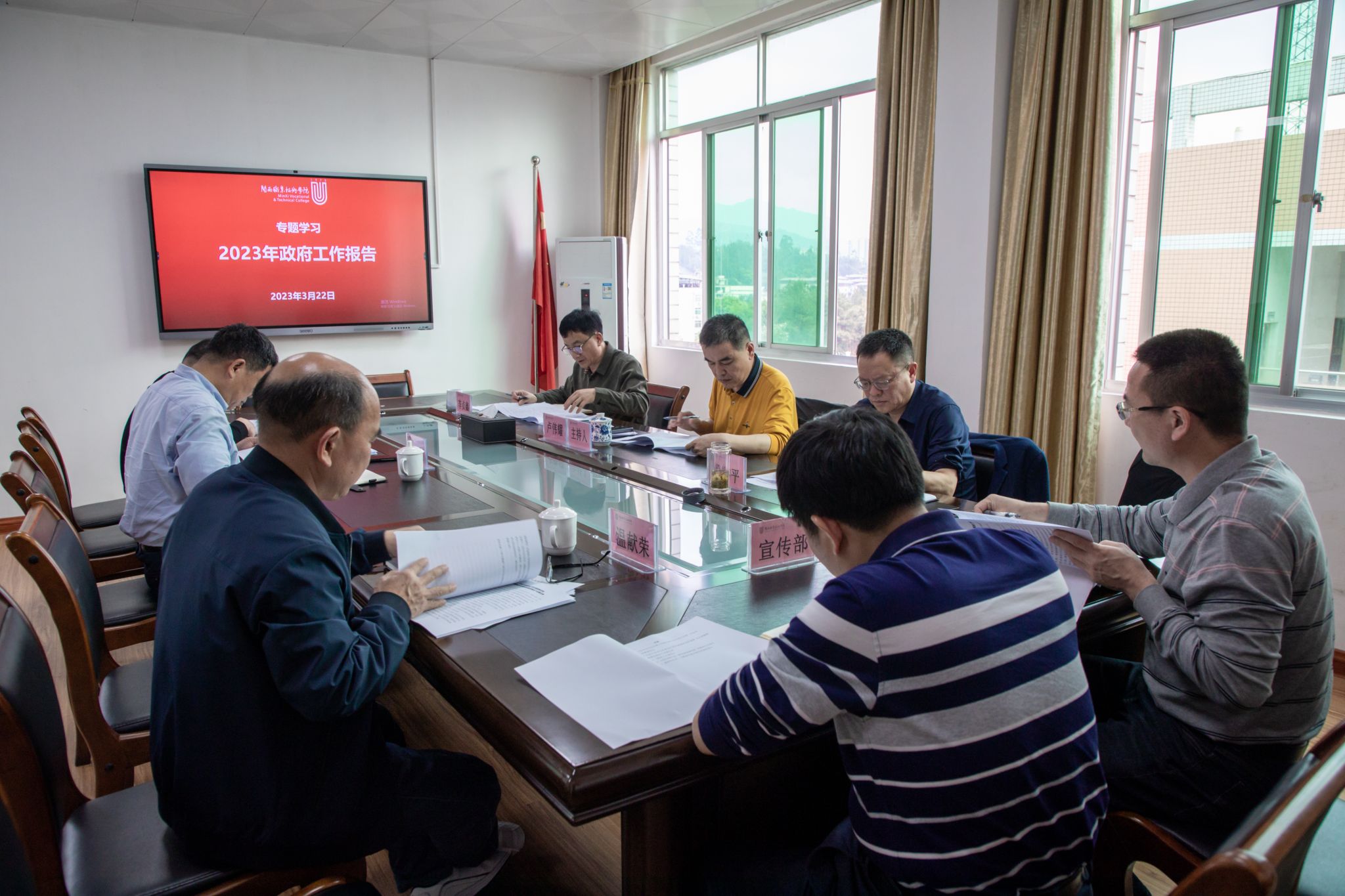 3月22日下午,校党委理论学习中心组2023年第四次学习会在六楼会议室召开,学习会围绕习近平总书记在第十四届全国人民代表大会第一次会议上的重要讲话,习近平总书记在参加江苏代表团审议时强调牢牢把握高质量发展这个首要任务的重要要求,围绕《政府工作报告》,进行集中学习研讨。校党委书记卢伟耀主持学习会,校党委副书记李贞鑫作“以高质量党建引领保障学校高质量发展”专题发言,中心组成员围绕学习内容进行讨论交流。