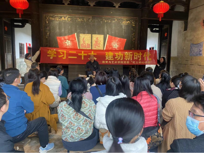 为深入学习宣传党的二十大精神,以“党章传诵 党徽闪光 党旗飘扬”活动为载体,教育与艺术学院党委于2022年12月6日组织全体教师党员,通过“红色走读”的研学方式开展主题党日活动。校纪委书记温献荣参加此次活动。