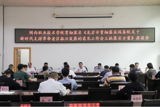 卢伟耀在座谈会上强调,贯彻落实《龙岩市贯彻落实<国务院关于新时代支持革命老区振兴发展的意见>工作分工抓落实方案》,一要牢固树立全市一盘棋的意识,站在龙岩市委、市政府的高度思考、研究文件,占领制高点,重点要思考市委、市政府要做什么,要我们做什么,我们能做什么。二要进一步对文件进行深化、细化、论证,紧紧抓住这个重大发展机遇,把政策优势转化为发展优势,围绕龙岩市工业发展、农业发展、城市建设、民生事业、新型城镇化建设、乡村振兴等方面大胆思考,研究切入点。三要有弱鸟先飞的意识,主动融入,为确实办好职业教育贡献闽大力量和闽大智慧。