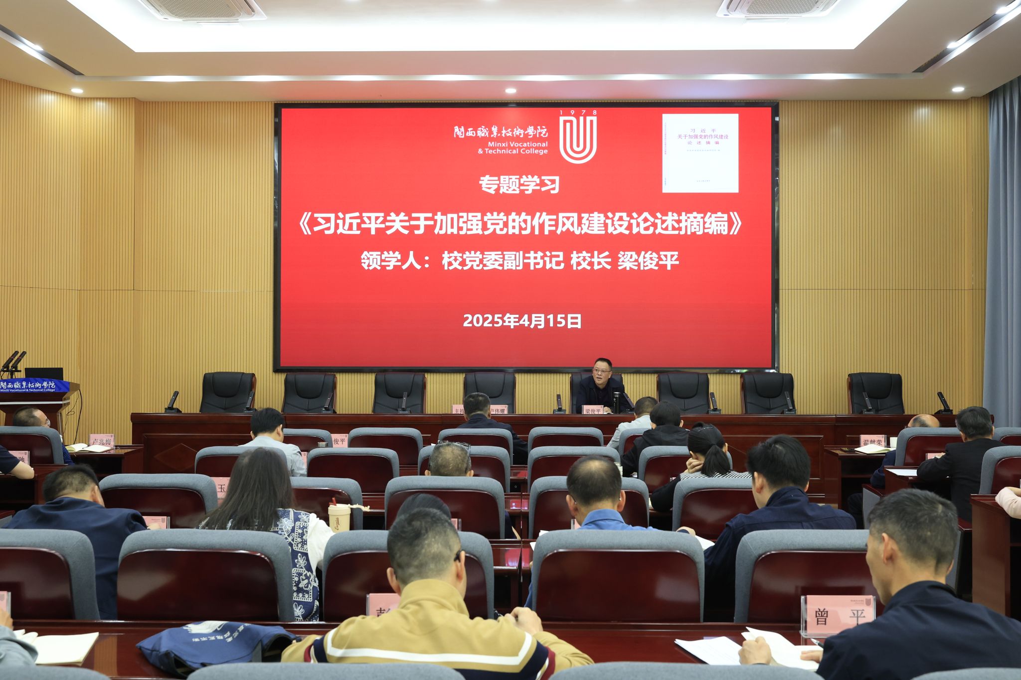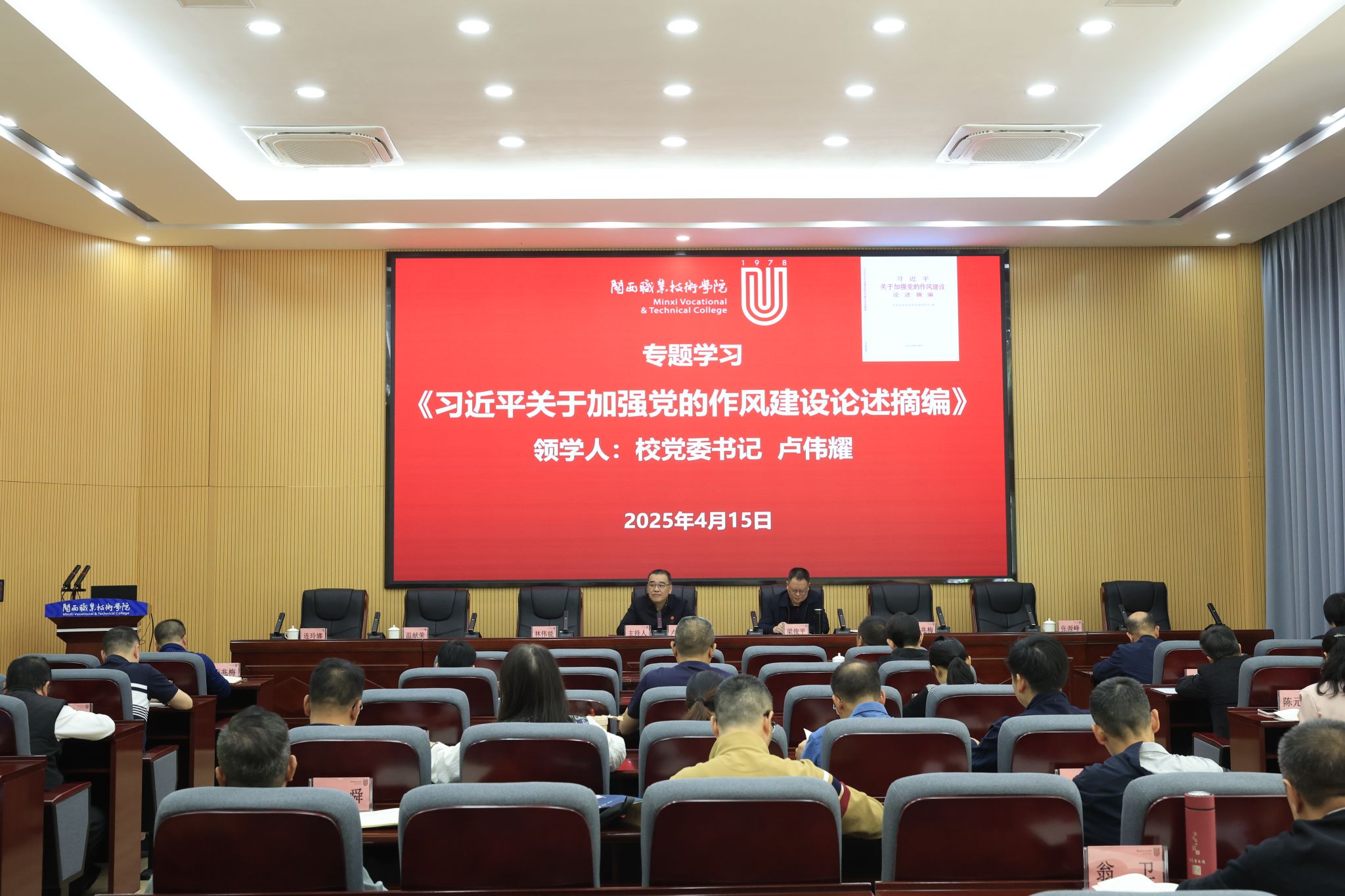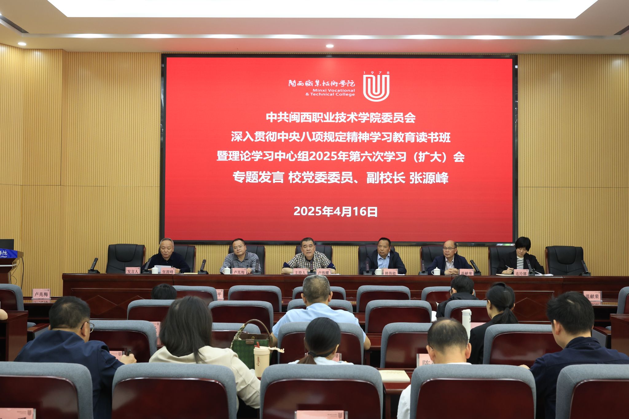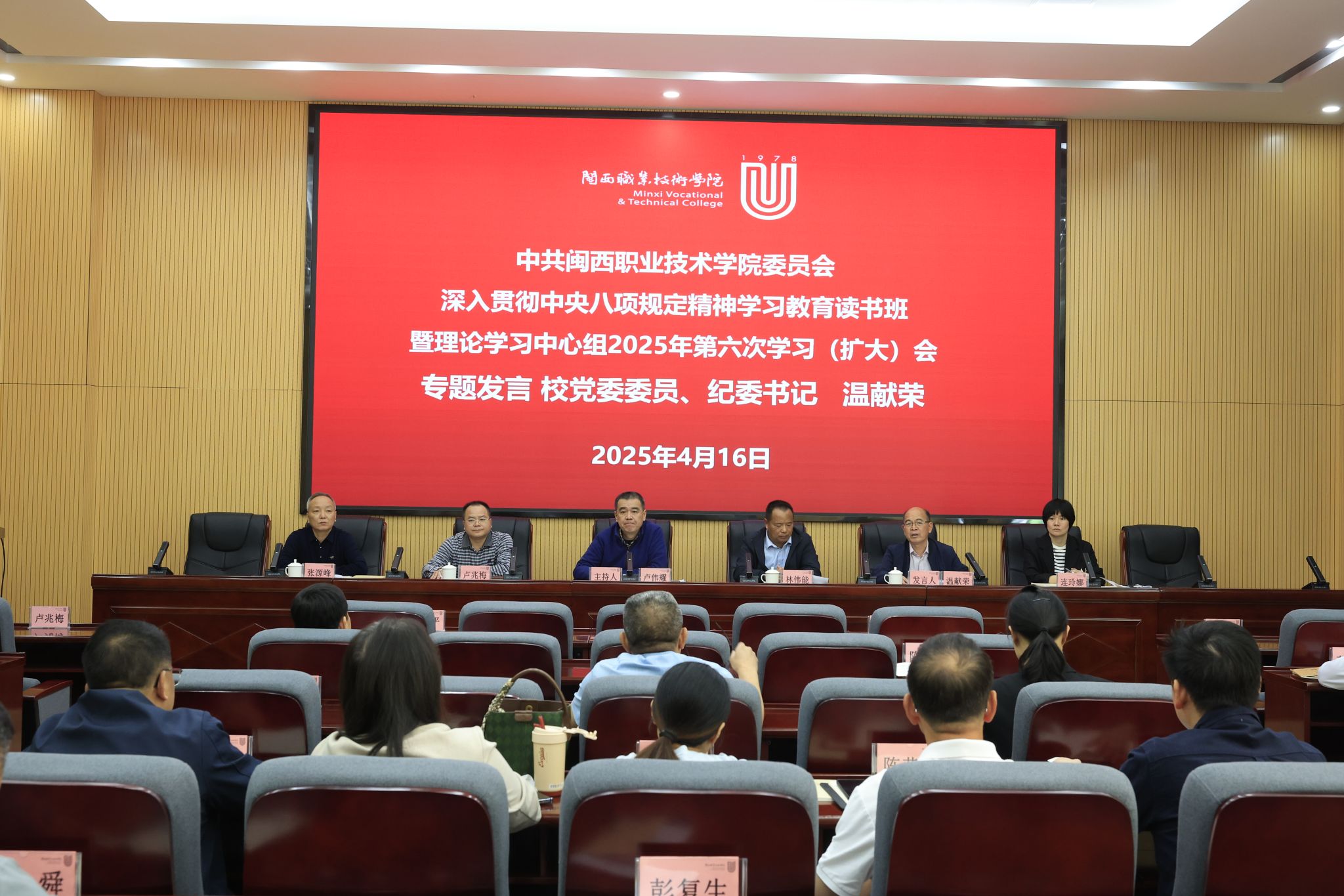 根据党中央、省委和市委统一部署,按照校党委开展学习教育的工作安排,4月15日至16日,校党委召开深入贯彻中央八项规定精神学习教育专题读书班暨理论学习中心组2025年第六次学习(扩大)会,深入学习贯彻习近平总书记关于加强党的作风建设的重要论述,认真学习贯彻中央八项规定及其实施细则精神和省、市实施办法,示范带动全校党员干部自觉遵规守纪、大胆干事创业,切实以作风建设高标准为学校事业高质量发展提供有力保障。