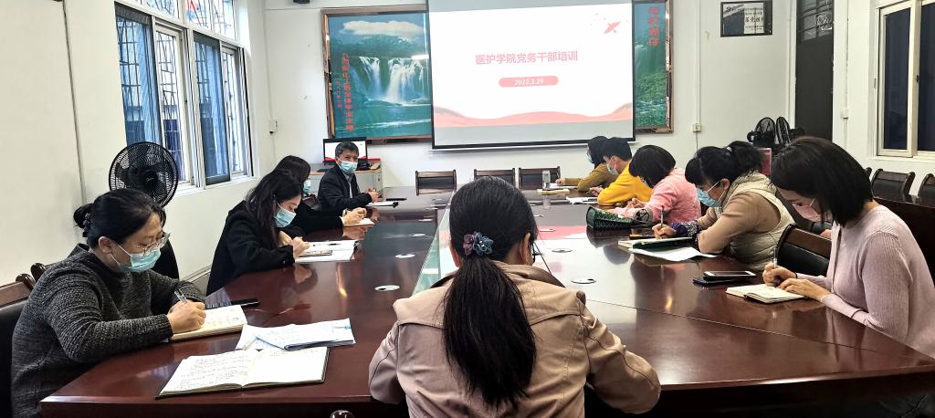 2022年3月29日,医护学院党委以“发挥党建引领作用,提高效率、提升效能、提增效益”为主题,组织开展党务干部培训,各党支部委员参加培训。