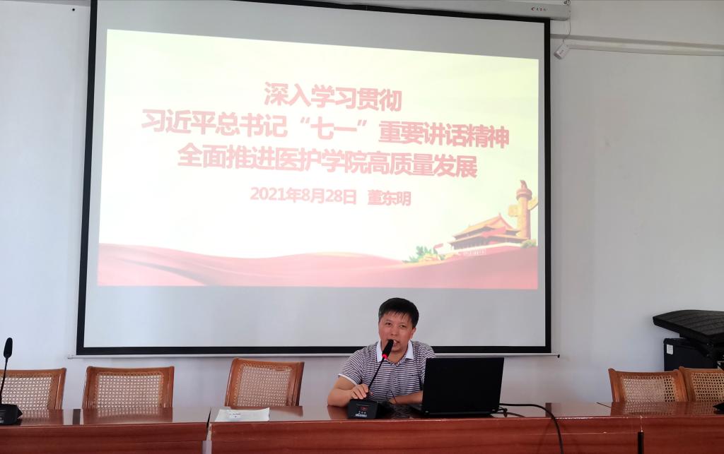 8月28日下午,在医护学院新学期教职工大会上,医护学院党委组织全体教职工深入学习习近平总书记“七一”重要讲话精神,持续推进“再学习、再调研、再落实”,深化党史学习教育。