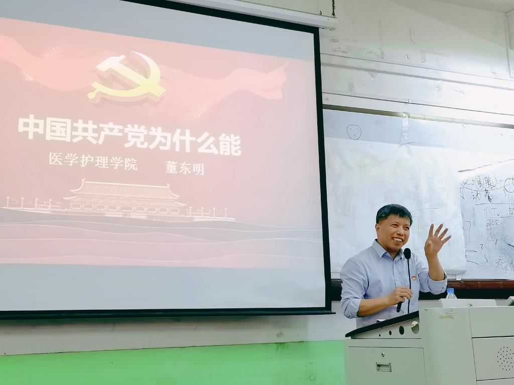 开班仪式结束后,医护学院党委负责人以《中国共产党为什么能》为题,为入党积极分子培训班上第一堂党课,以生动的事例解读中国共产党百年辉煌的答案。