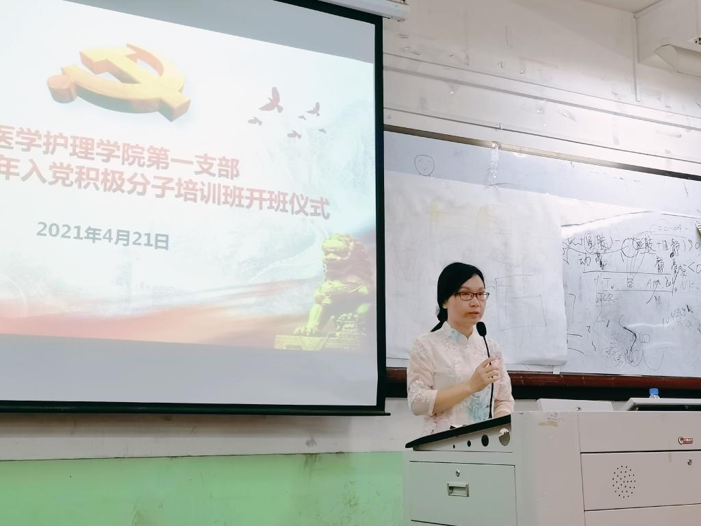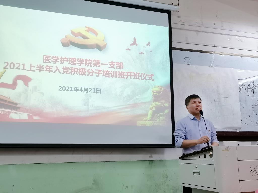 4月21日晚,医学护理学院第一党支部举行2021年上半年入党积极分子培训班开班仪式,96名入党积极分子参加培训。