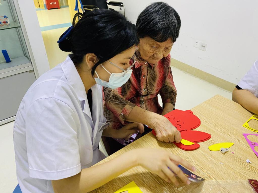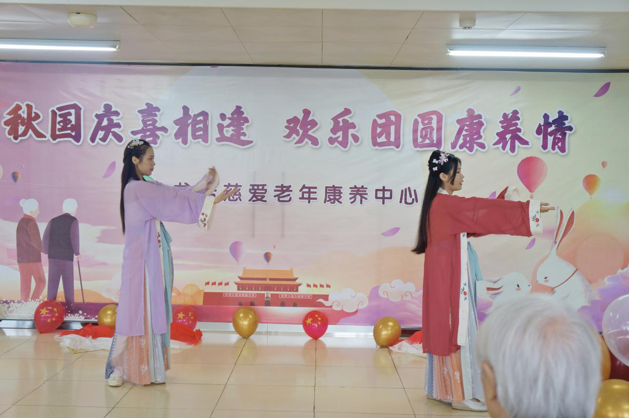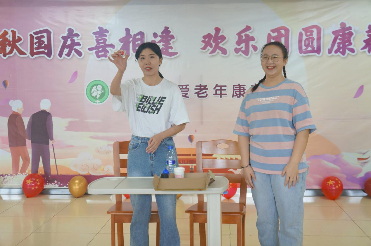 9月29号上午,医学护理学院第一党支部预备党员18级老年服务与管理班李汉妮、童捷同学参加实习单位慈爱老年康养中心为老人们举办的 “中秋国庆喜相逢 欢乐团圆康养情”联欢活动,为老人们送上诗歌朗诵、小品、舞蹈等丰富多彩的节目,在为康养中心老人提供专业服务的同时,让老人们感受到浓浓的节日欢乐与温暖,深受康养中心老人的好评。