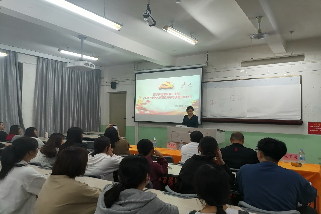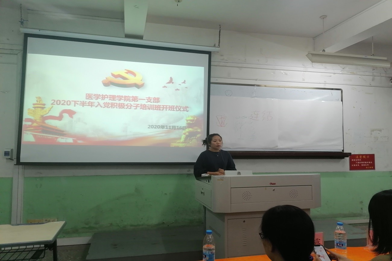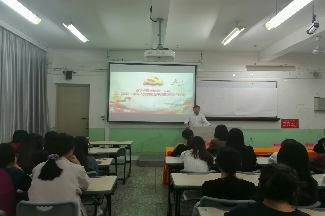 11月12日晚,医护学院第一党支部举行2020年入党积极分子培训班开班仪式,90名入党积极分子参加开班仪式。