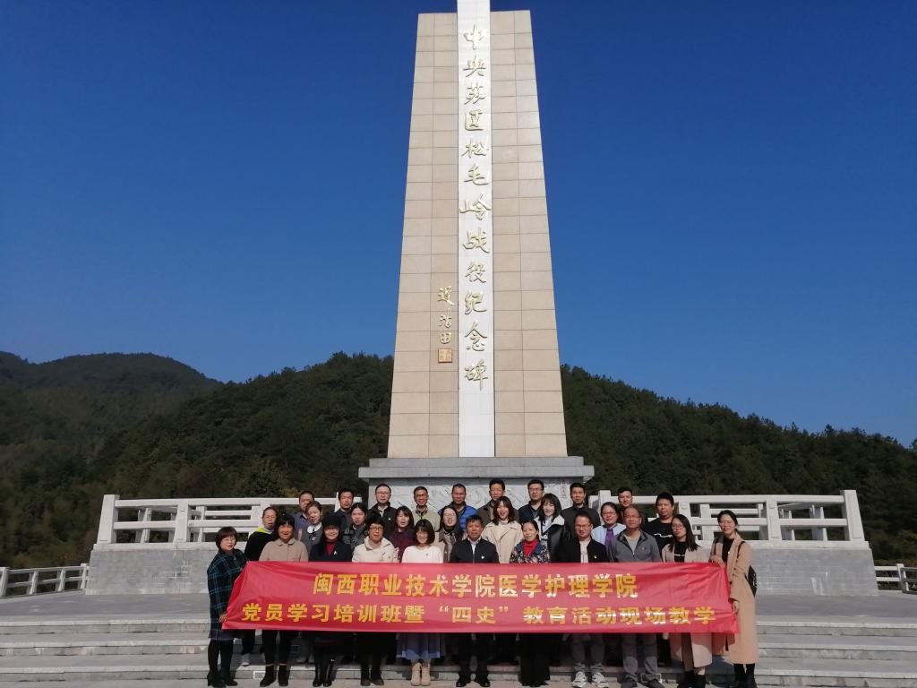 12月5—6日,医护学院党委组织全体党员前往松毛岭和长汀县开展为期两天的党员学习培训暨“四史”教育现场教学活动。