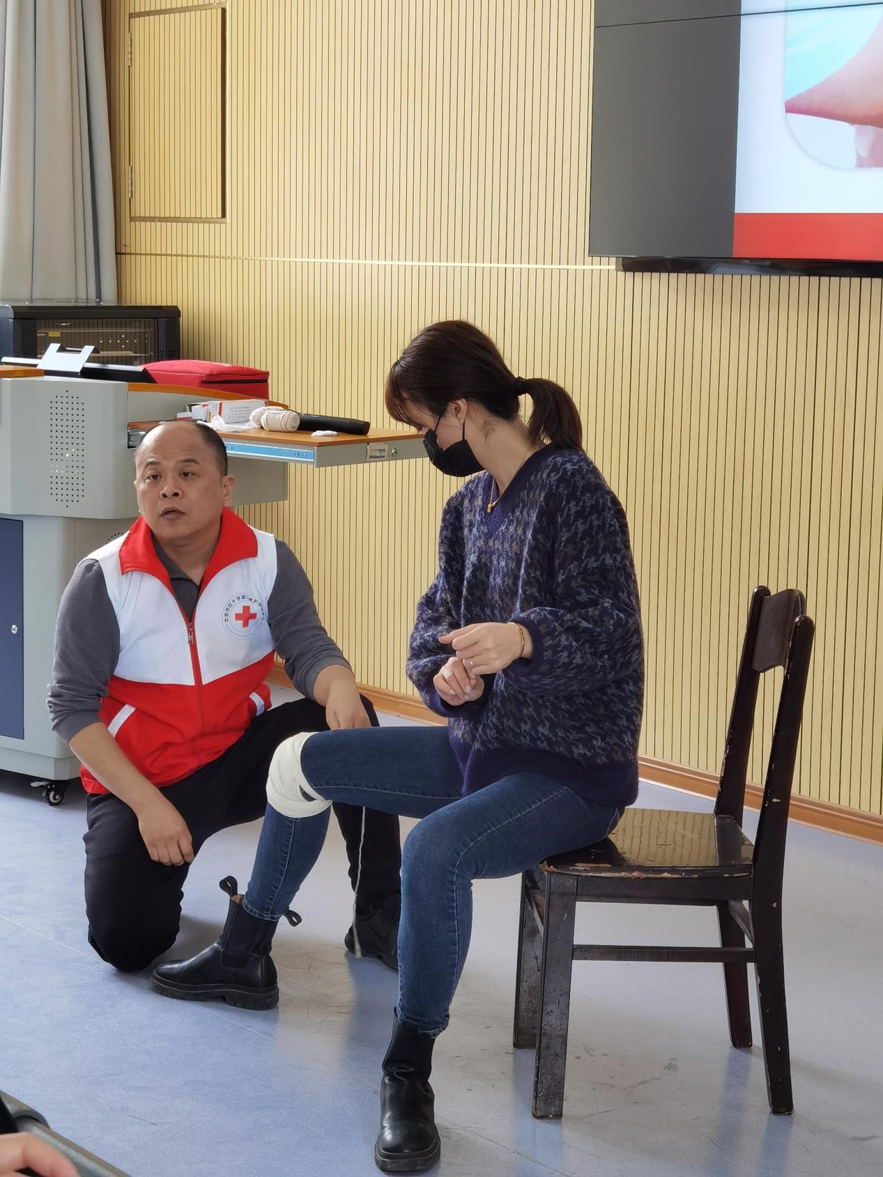 第一党支部党员认真学习救护“黄金时间”、心肺复苏程序和操作技术、创伤救护等急救知识,积极上台配合老师进行实操训练,练习心肺复苏和创伤出血包扎技术。党员们表示,掌握应急救护知识可以在关键时刻挽救自己和他人的生命,有利于党员更好地发挥先锋模范作用,发扬人道、博爱、奉献红十字精神。