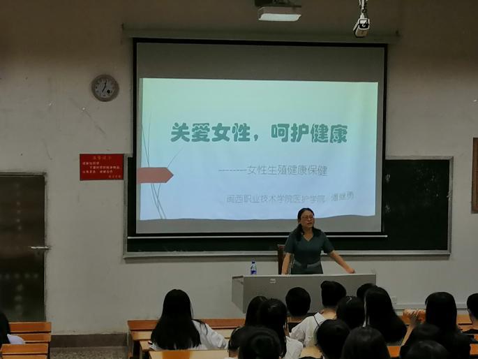 为了让同学们更加关注、关爱女性健康保健,5月26日晚七点于办公楼一楼影视厅,医护学院助产专业副主任/副教授潘继勇老师为同学们开展了主题为“关爱女性,呵护健康”的知识讲座。