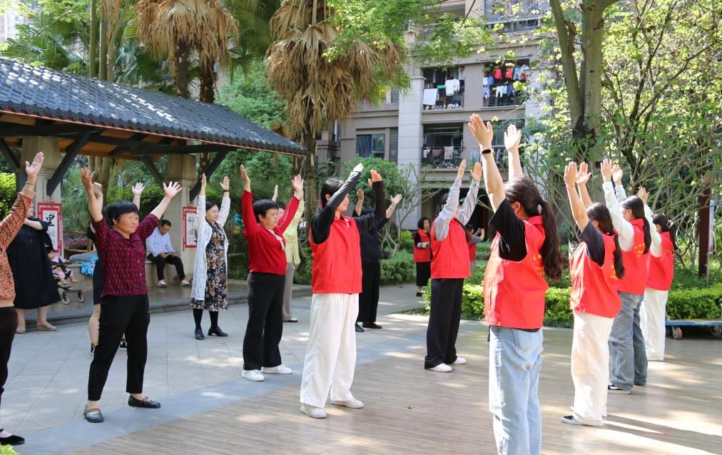 为弘扬中医传统文化,支部还精心设置了“八段锦养生课堂”。在专业人员带领下,社区居民们认真学习传统养生功法的动作要领,居民们学习热情高涨。