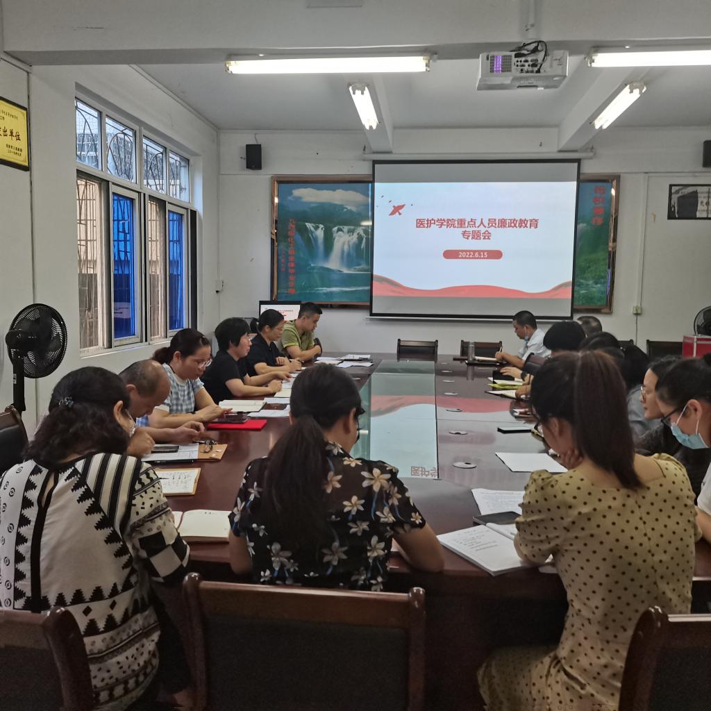 为落实学校党委全面从严治党的部署要求,抓实抓细日常监督,进一步提高重点人员的廉洁自律意识和拒腐防变能力,6月15日,医护学院组织召开重点人员集体廉政谈话会。会议由医护学院党委负责人邱伟彬主持,医护学院党政领导班子成员、专业主任及团委书记等重点人员参加会议。