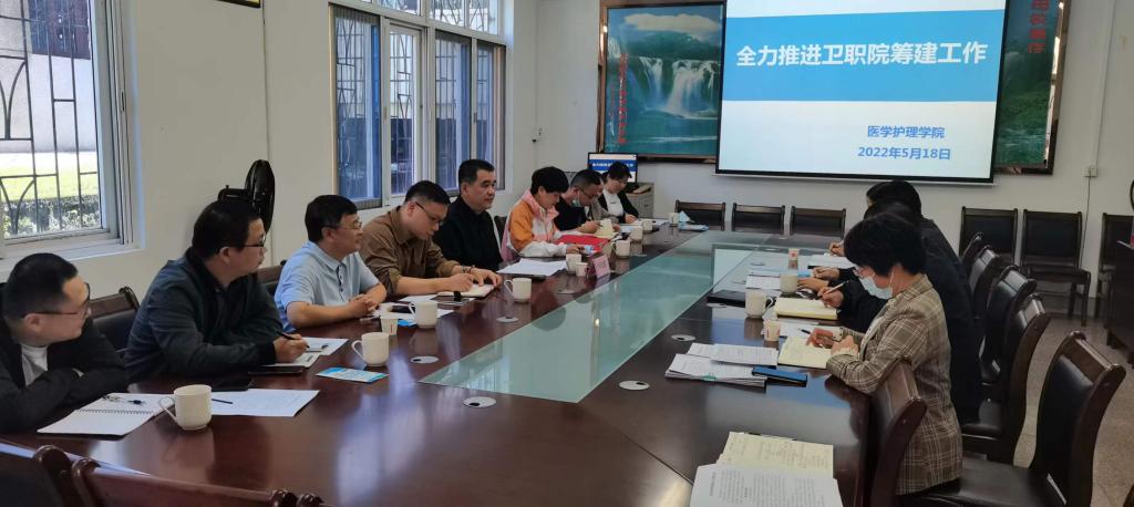 5月18日上午,校党委书记卢伟耀携发规处、对外交流合作处、科研处负责人深入医护学院调研指导工作,医护学院班子成员及秘书参加调研座谈会。