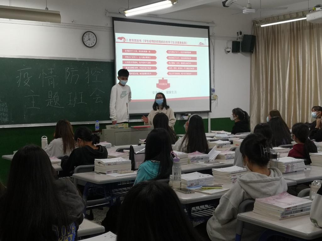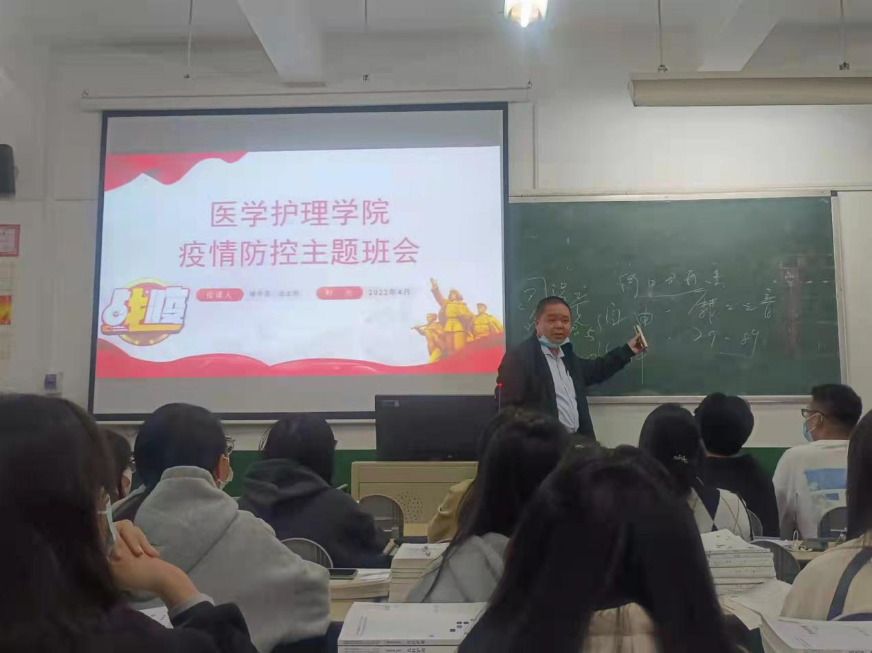 根据学校疫情防控专题协调会的精神,医护学院于4月2日晚自习再次组织召开疫情防控主题班会,会议由各班班主任、辅导员主持,院领导班子深入班级参与。