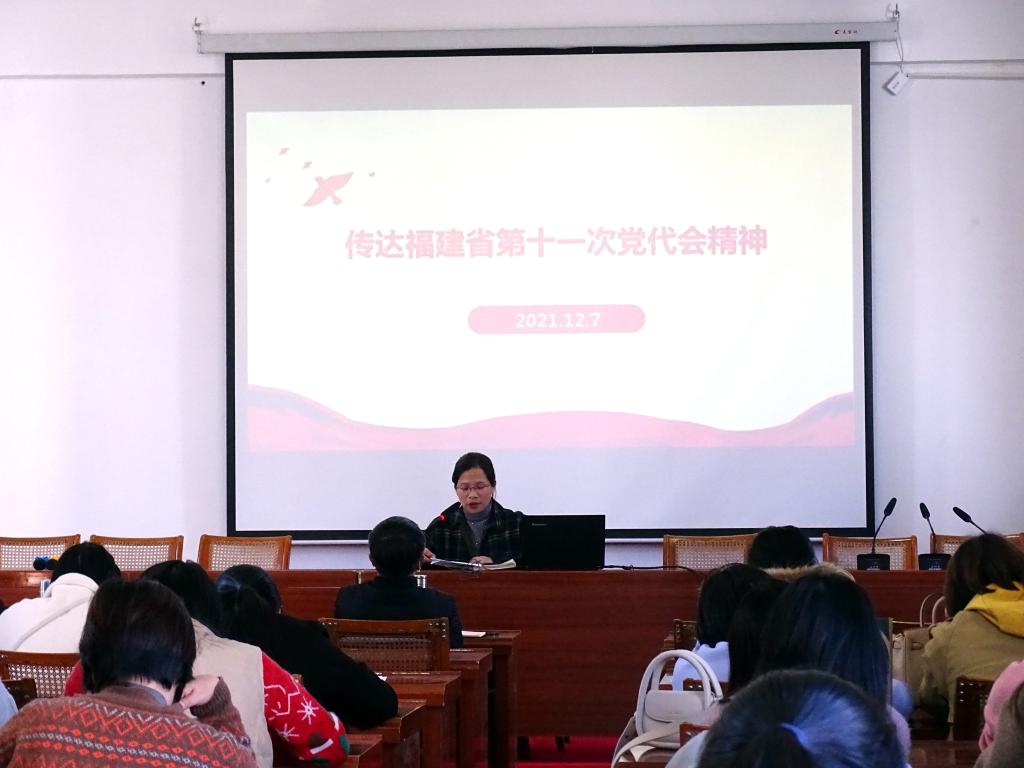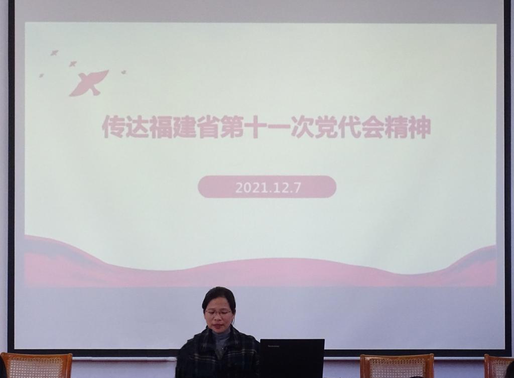 会议组织教职工集体学习省第十一次代表大会报告《高举旗帜牢记嘱托 勇担使命砥砺前行,奋力谱写全面建设社会主义现代化国家福建篇章》,深入解读今后五年以及更长一段时期福建省的奋斗目标、发展思路和具体任务,充分认识省第十一次党代会是在“两个一百年”历史交汇的关键节点召开的一次重要会议,描绘了未来五年福建发展的宏伟蓝图,吹响了奋力谱写全面建设社会主义现代化国家福建篇章的冲锋号角。