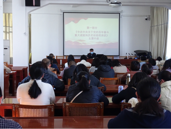 医护学院党委负责人以《以史为鉴、开创未来的纲领性文献》为题,从总结党的百年奋斗重大成就和历史经验的目的意义、百年奋斗的重大成就、新时代历史性成就和历史性变革、习近平新时代中国特色社会主义思想核心内容、百年奋斗五大历史意义、十大历史经验等方面详细解读《中共中央关于党的百年奋斗重大成就和历史经验的决议》的主要内容,全面介绍“两个确立”的深刻内涵和决定性意义,引导教职工准确把握《决议》这篇马克思主义纲领性文献的丰富内涵和核心要义。通过学习《决议》,进一步从党的百年奋斗中看清过去我们为什么能够成功,弄明白未来我们怎样才能继续成功,从而更加坚定、更加自觉地践行初心使命,落实立德树人根本任务,将学习成效转化为推动医护学院高质量发展的强大动能。
