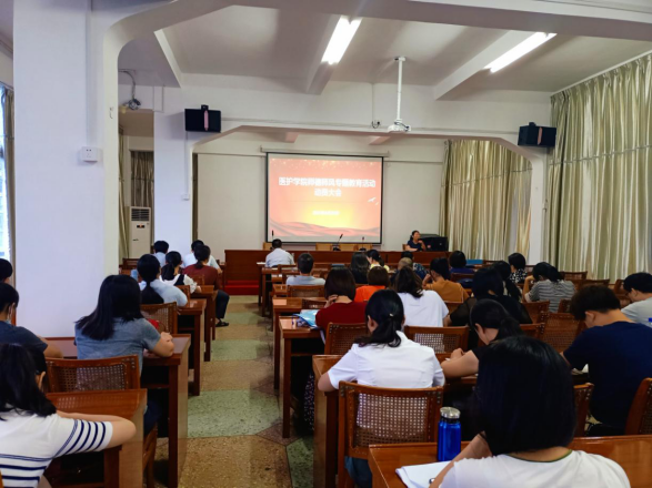 动员大会上,医护学院通报了全国11个违反师德规范的典型案例,开展师德警示教育,让全体教职工引以为戒。