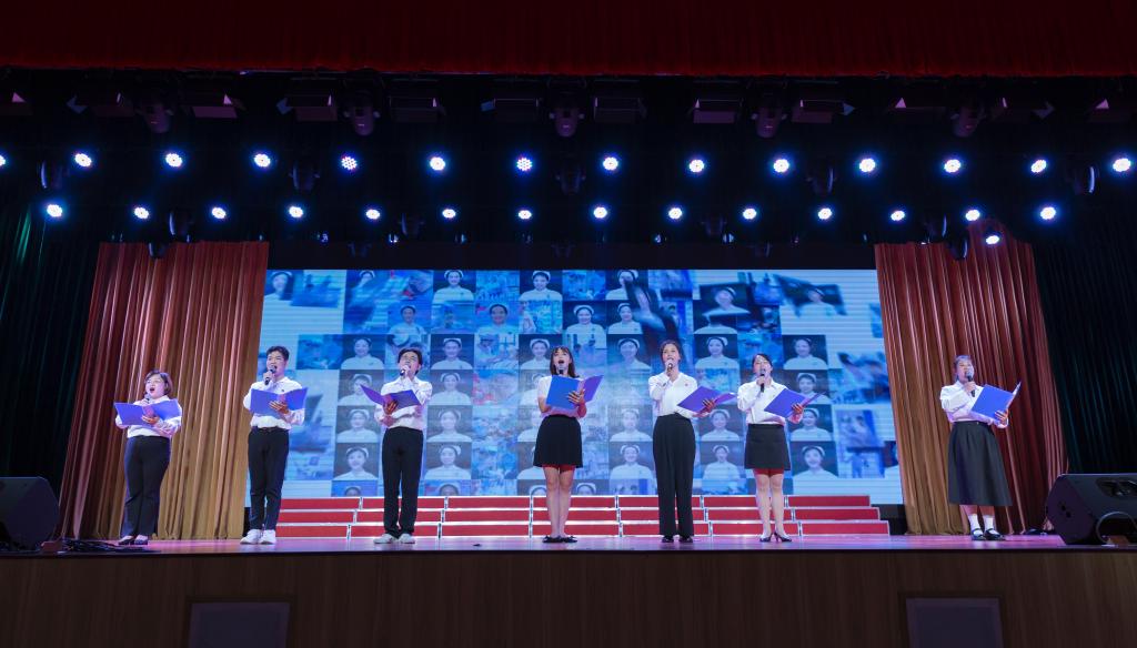 5月12日晚,医学护理学院在大匠堂举办“医心向党”文艺晚会暨5·12国际护士节授帽仪式,医护师生通过精彩的文艺节目礼赞中国共产党百年辉煌,致敬白衣天使。MG冰球突破官网党委书记卢伟耀、副校长刘路永、卢兆梅与医护学院师生一起观看晚会。