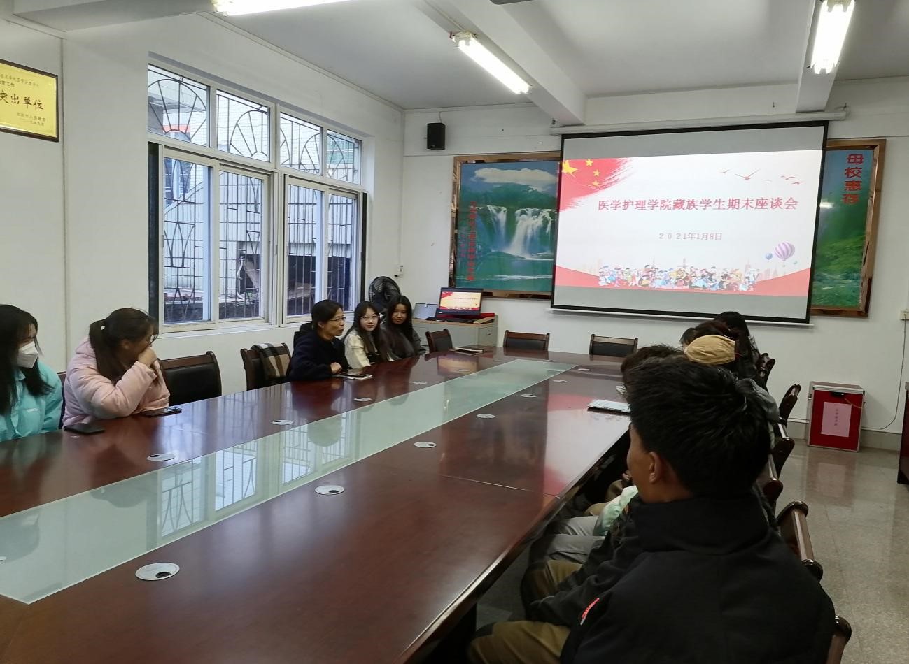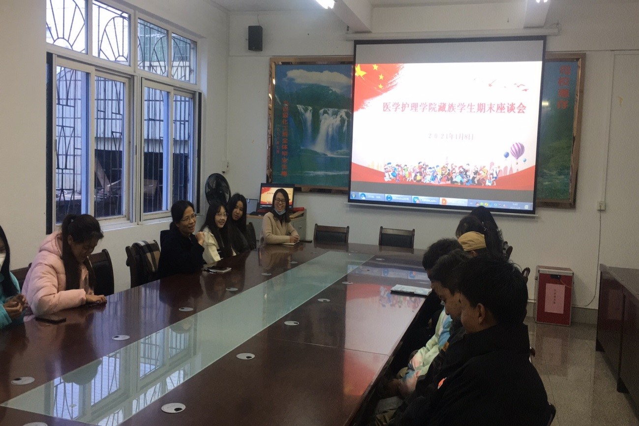 1月8日上午,医学护理学院召开藏族学生期末座谈会,学院学生工作负责人、辅导员以及12名藏族学生参加座谈交流。