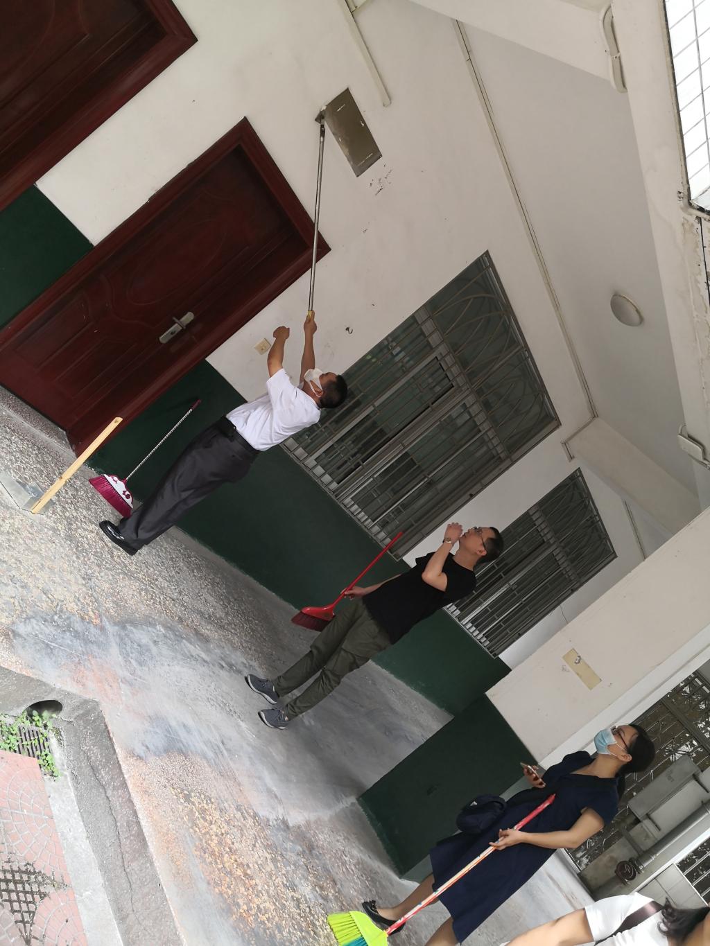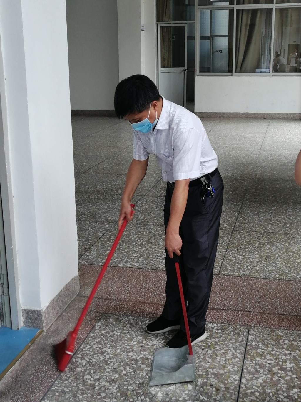 由支部书记傅敏生老师组织全体老师召开会议,安排部署此次大扫除活动,明确分工,落实重点任务,将大扫除工作做实做细。会后,全体党员教师兵分三路,拿起扫把、抹布等劳动工具,进入实训楼、教学楼、校园周边,扫地、抹桌、拖地、排桌椅、检查设备,忙个不停,经过一下午的努力,校园面貌焕然一新,为打赢疫情防控阻击战和复课开学打下了坚实的基础。
