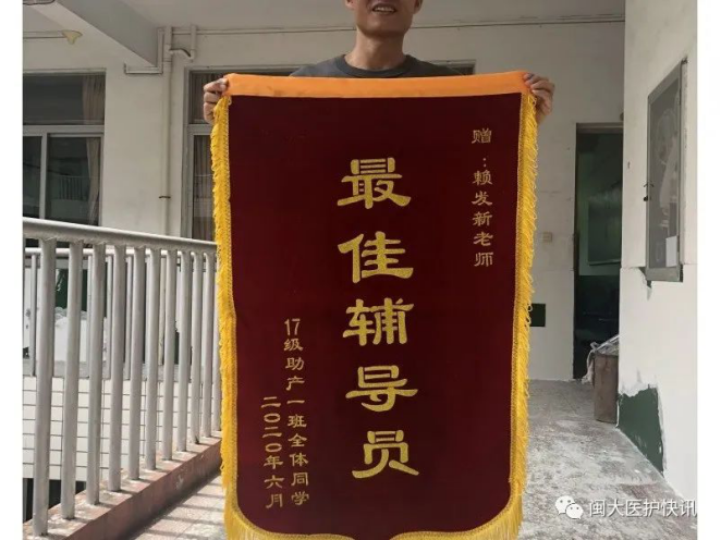 医护学院辅导员用行动践行初心和使命,用扎实细致的工作作风,让每一位同学都感受到如家的温暖,同学们说:“在回‘家’的归途中,辅导员老师们的陪伴,让这条道路充满温暖与力量……”2017级助产一班全体同学自发向赖发新老师赠送锦旗,以表感恩之心。