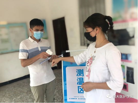 为了保障学生安全、顺利返校,辅导员赖发新、陈国良老师在学生返校前15天就按学校、医护学院的安排部署开始各项准备工作,指导学生申领健康码、登记体温、申报行程、登记到站时间等,在学生返校前后认真细致完成返校审核、家校联系、体温检测、信息排查、温馨提示、异常送检等一系列工作。每一个确保平安返校和有序复学的信息都是他们关注的重点,每一个护佑健康和暖心服务的场景都有他们的身影,每一个体温检测和闭环管理的卡点都是他们坚守的岗位。既做好返校学生的管理和服务,又做好未返校学生的跟踪和保障;既严格落实校园防控措施,又加强毕业生离校就业服务工作;既做学生思想引导者,又要做学生材料“搬运工”。辅导员谢凯露老师还在产假期间,提前返岗投入毕业生返校工作,用实际行动守好自己的“责任田”。辅导员韩晓丹老师当好“云上联络员”,通过学院官网和“闽大医护快讯”公众号,编辑“医声有你”“医护毕业季”等特色栏目,讲好医护故事。收集和发布就业招聘信息,为毕业生就业服务。辅导员许思、陈明娟两位老师按照工作分工,提前与学生发展对象、预备党员联系,做好材料审核、汇编整理等工作,为学生返校尽一份心出一份力。