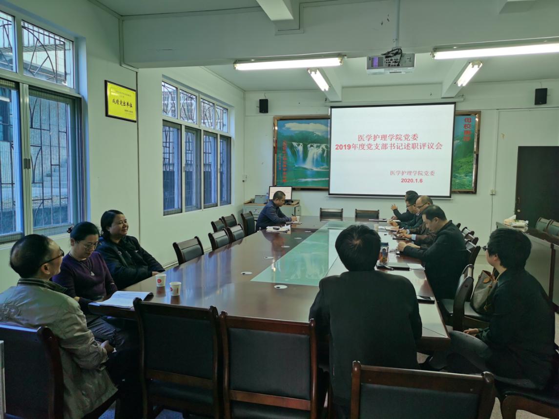 医学护理学院党委根据学校党委文件要求,于2020年1月7日下午3:00天马校区一楼会议室,召开了2019年度基层党支部书记抓党建述职评议考核工作,4位党支部书记向医护学院党委述职。医护学院党委委员、各党支部委员、部分党员代表,共计18人参加会议。