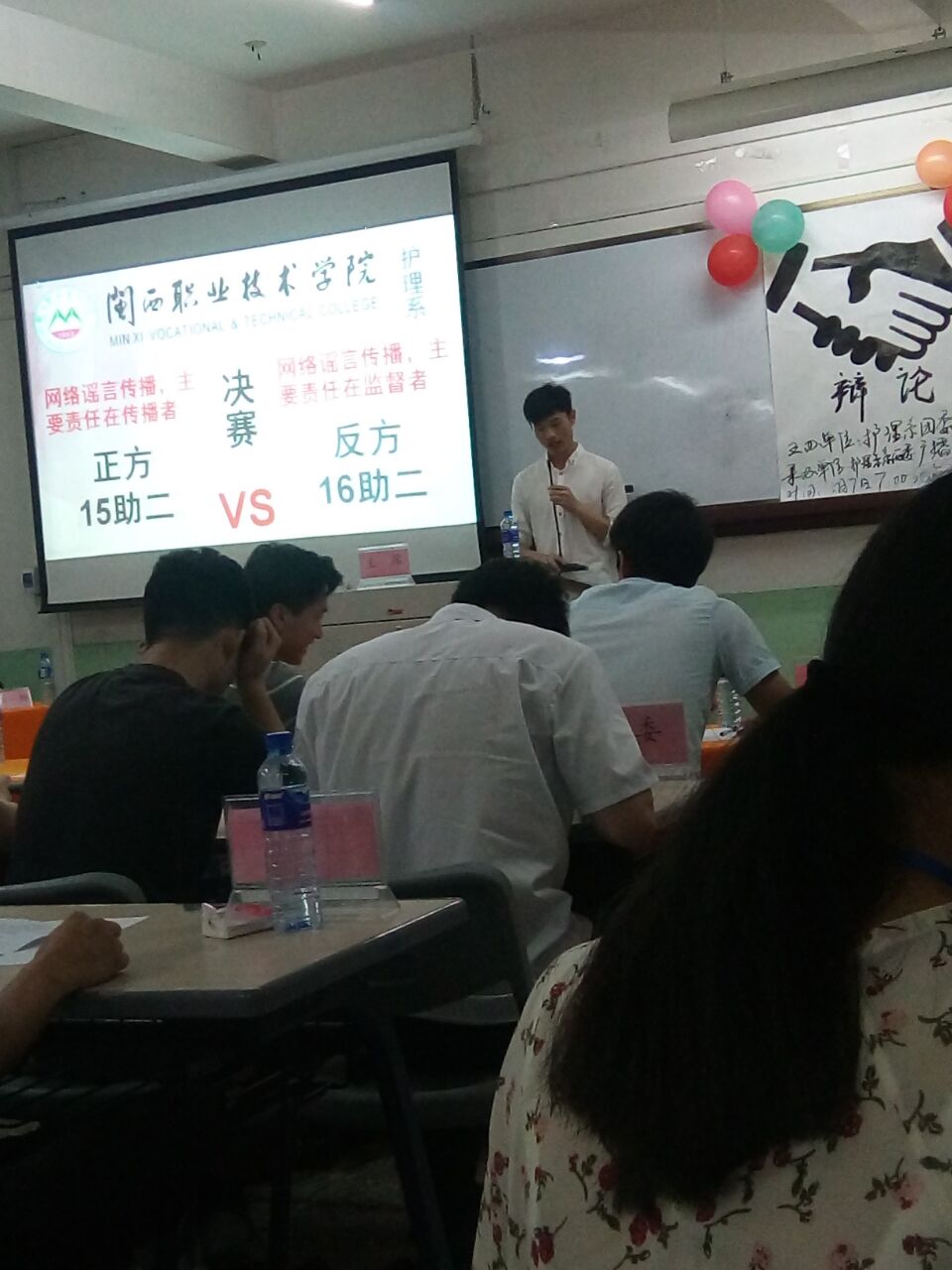本次比赛共选出五名最佳辩手,他们分别是李小红、林小红、郑舒怡、张李莉、张睿。进入复赛的队伍有:系两委代表队,15助二,16助一 ,15护一,15助一,16助二,复赛暂定于3月29号。通过此次比赛让我们看到了我系同学极强的团队合作精神和丰富的文化底蕴,并充分展现了当代大学生扎实的理论知识、专业素养与人格魅力,更体现大学生个人能力与综合素质完美结合的重要性。