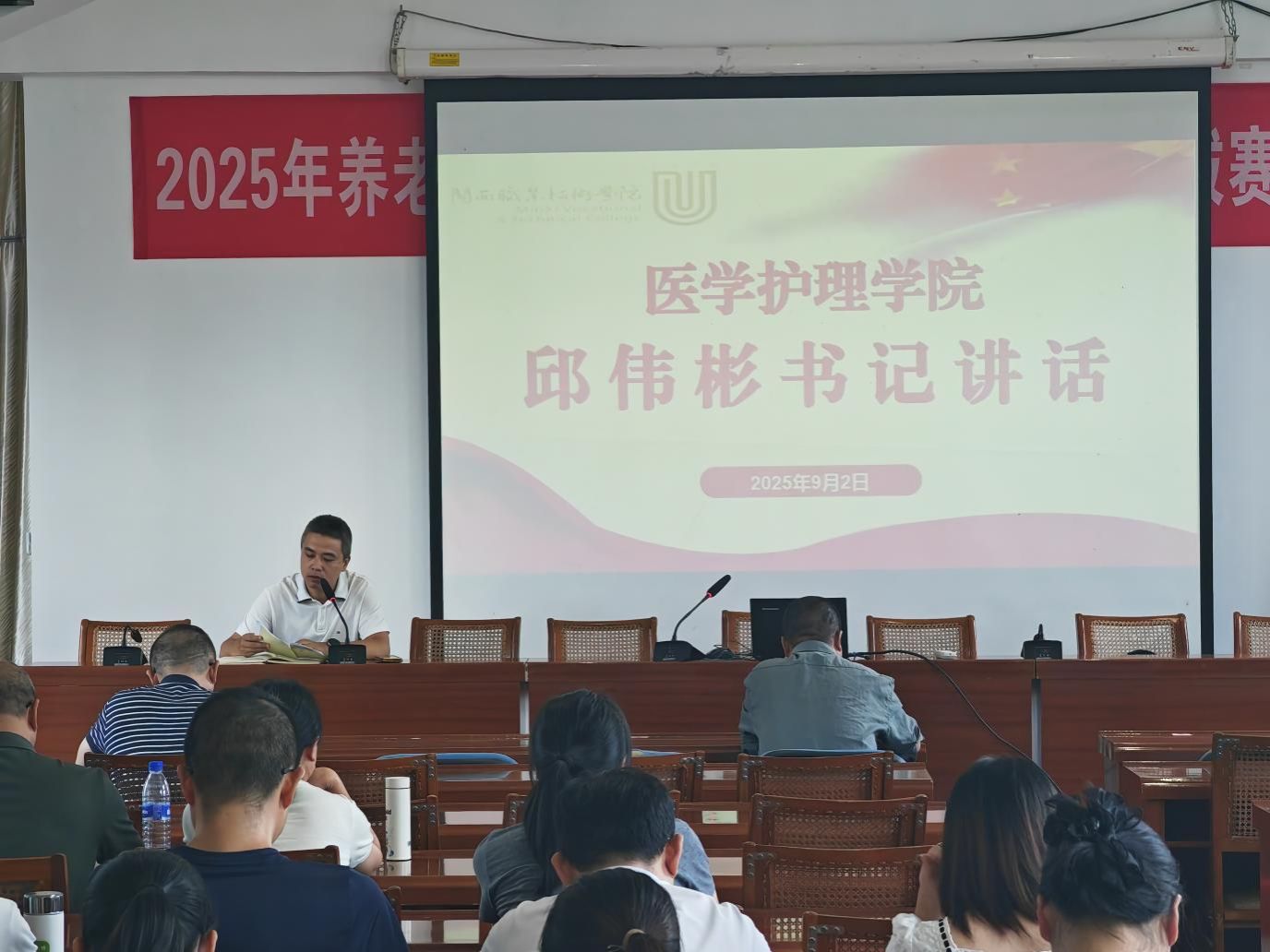 2025年9月2日下午,医学护理学院在天马校区五楼会议室召开了弘扬教育家精神专题报告会,学院全体教师参加。