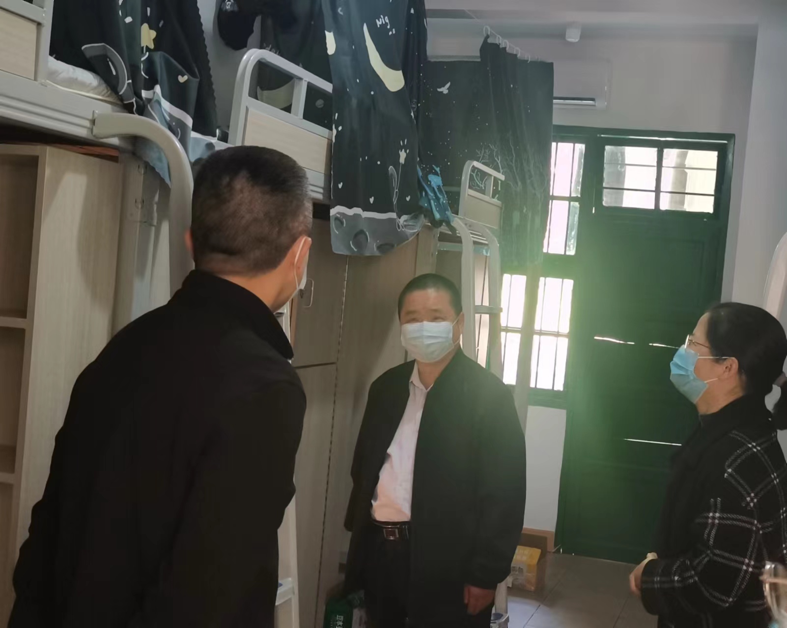 在学校疫情常态化防控下,为及时了解学生的思想动态、学习生活等情况,以确保各项学生工作的有序、平稳开展。五一期间,医护学院党政领导带领辅导员、班主任和训导师深入学生宿舍,实地了解学生假期情况,并为学生送去关心和问候。