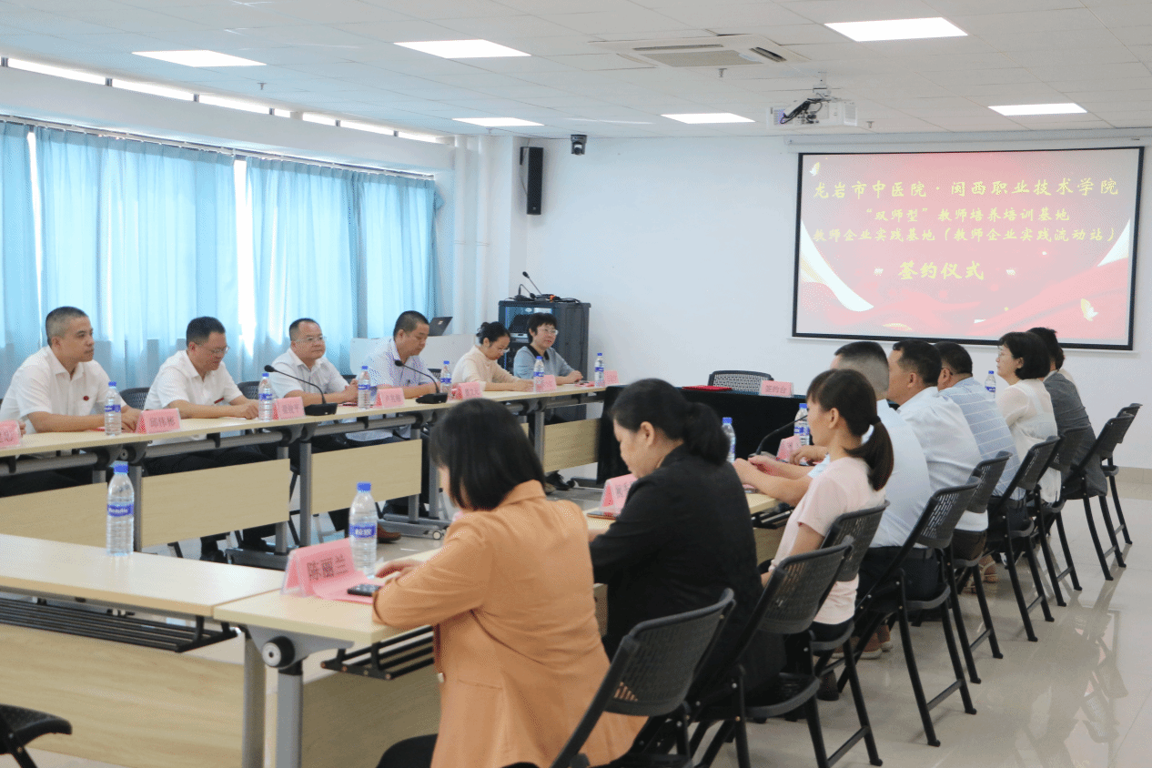 为加强学校“双师型”教师队伍建设,进一步提升应用型人才培养质量,增强服务地方经济社会发展能力,10月8日上午,MG冰球“双师型”教师培训基地、教师企业实践基地(教师企业流动站)签约暨揭牌仪式在龙岩市中医院举行,校党委副书记、校长梁俊平,副校长卢兆梅,龙岩市中医院党委书记(院长)、MG冰球突破官网客座教授郭伟出席签约仪式,龙岩市中医院相关领导,学校教师工作处、对外交流合作处、医护学院等部门单位负责同志参加签约仪式。
